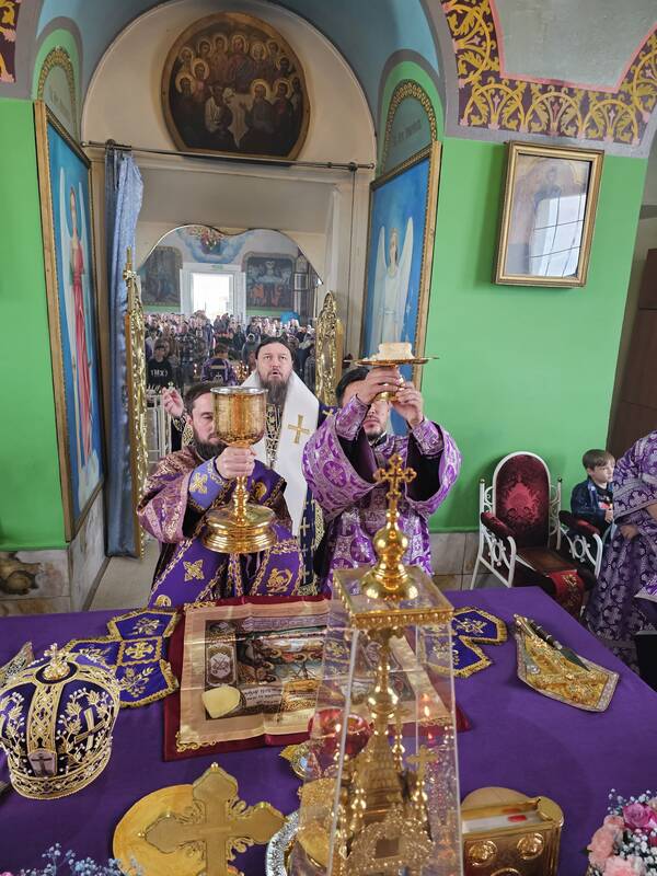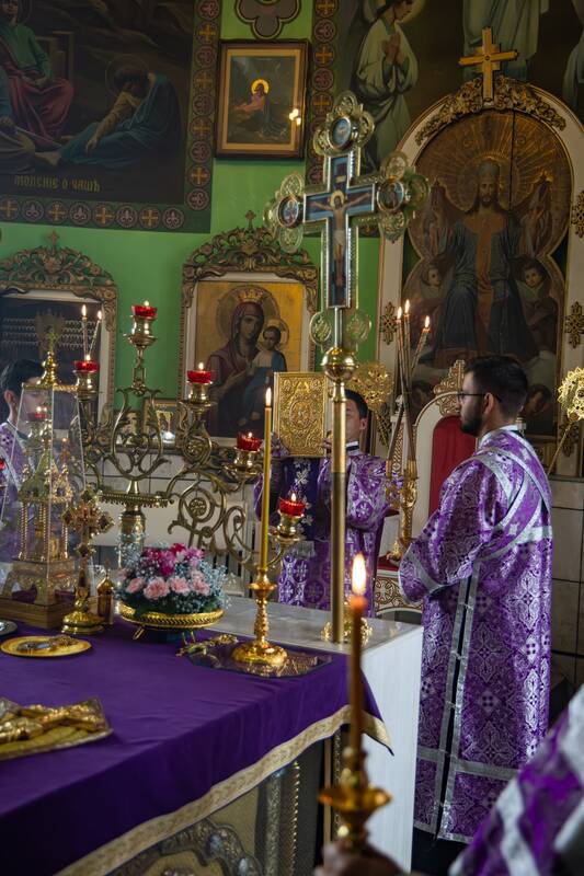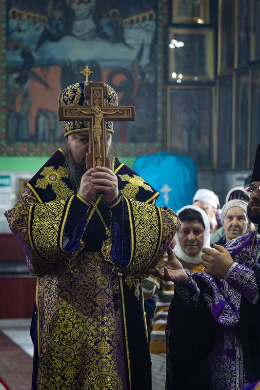После великого славословия епископ Вианор совершил чин Воздвижения Креста.