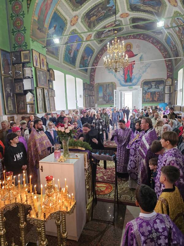 После чина воздвижения Архипастырь помазал духовенство и прихожан освященным елеем.