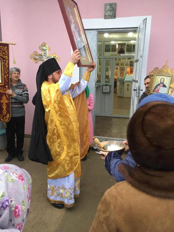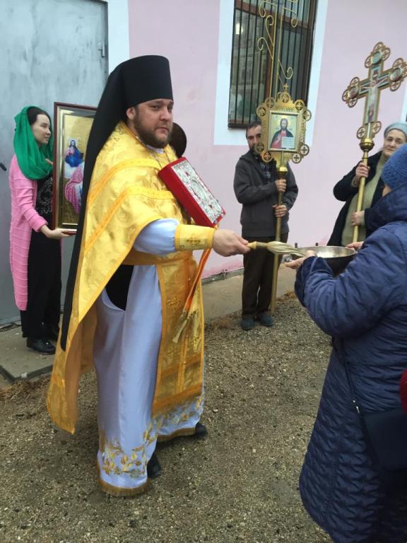 По заамвонной молитвы отец настоятель совершил молебен с крестным ходом вокруг храма и славлением с молитвой к святителю Николаю Мир Ликийскому чудотворцу.