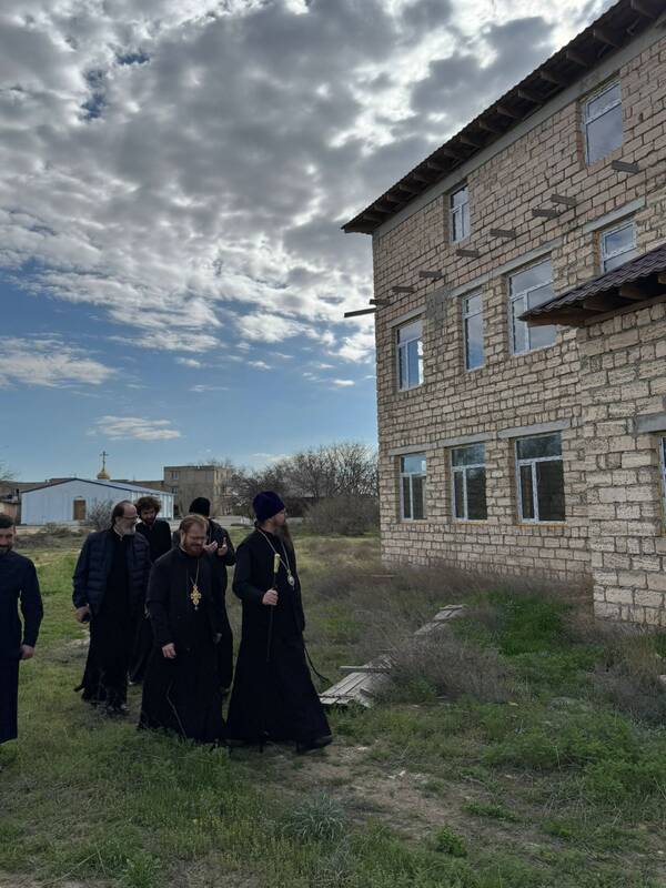 По окончании Богослужения Его Преосвященство ознакомился с ходом строительно-реставрационных работ духовно-культурного центра Благовещенского храма г.Актау.