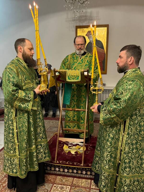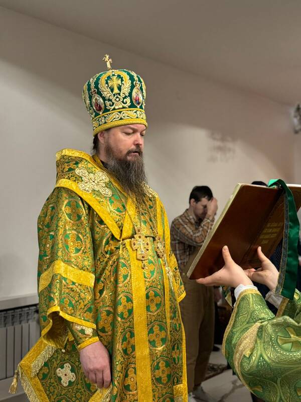 Его Преосвященству сослужили: настоятель Благовещенского храма г.Актау, протоиерей Сергий Понич, ключарь Свято-Успенского кафедрального собора г.Атырау, иеромонах Варфоломей (Мостовщиков), клирик кафедрального собора Христа Спасителя г.Уральска, протодиакон Иоанн Рошка, клирик Благовещенского храма иеродиакон Спиридон (Суняков).