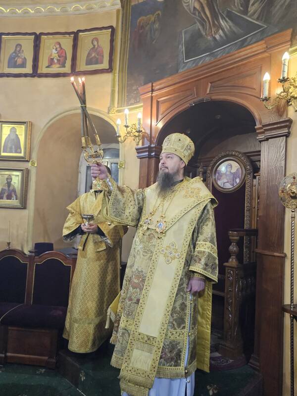В завершении богослужения Его Преосвященство поздравил духовенство и прихожан с Воскресным днем и обратился со словами архипастырского поучения после чего преподал архиерейское благословение.