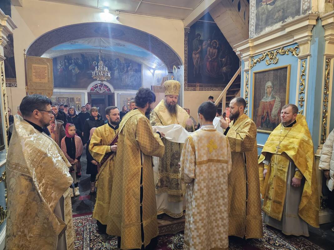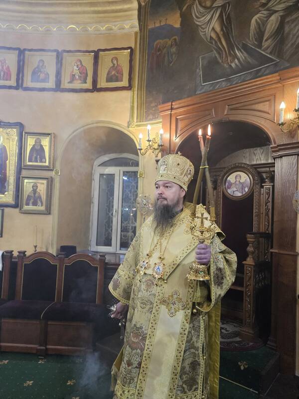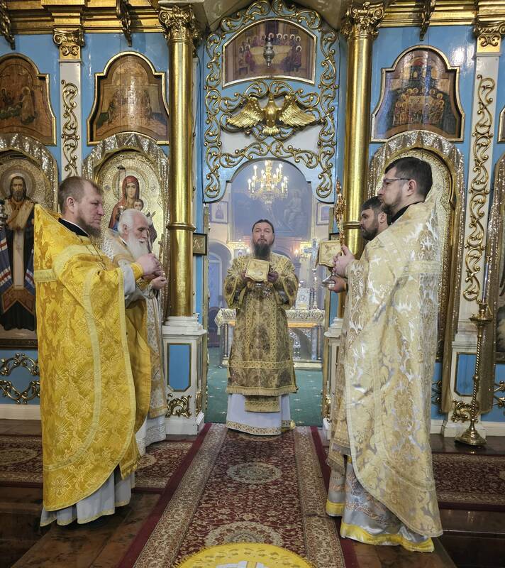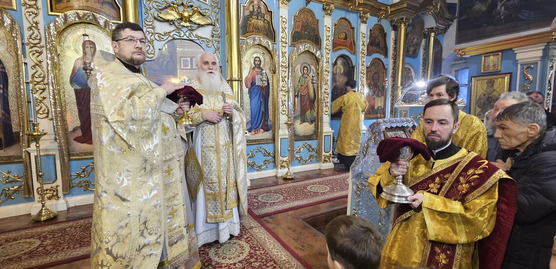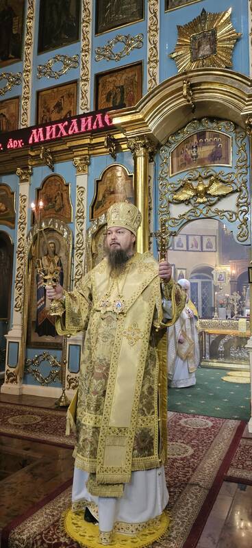 Его Преосвященство, Преосвященнейший Вианор епископ Уральский и Атырауский совершил Божественную литургию в кафедральном соборе Михаила Архангела г.Уральска. Накануне Его Преосвященство молился за всенощным бдением.