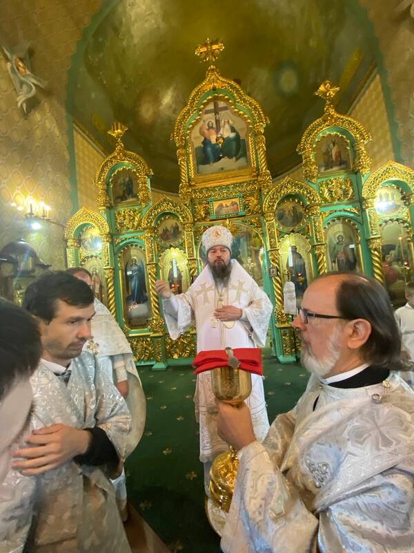 Его Преосвященство, Преосвященнейший Вианор епископ Уральский и Атырауский совершил Божественную литургию в кафедральном соборе Христа Спасителя г.Уральска. Накануне Управляющий Уральской епархией совершил всенощное бдение и на богослужении Утрени помазал молящихся освященным елеем.