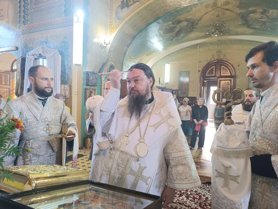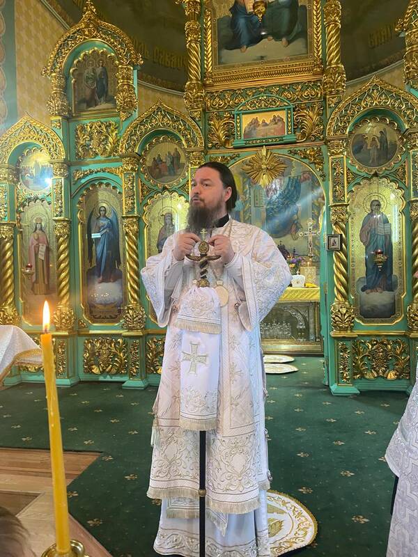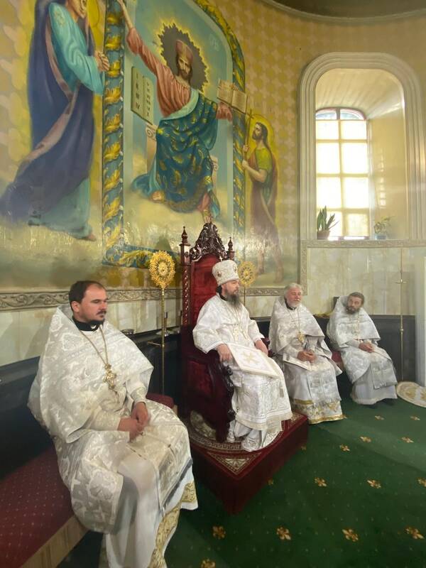 Его Преосвященству сослужили: настоятель кафедрального собора Христа Спасителя г.Уральска, протоиерей Анатолий Робу, клирики кафедрального собора Христа Спасителя: благочинный Приурального округа протоиерей Василий Кроитор, иерей Анатолий Гиляшев, протодиакон Иоанн Рошка.