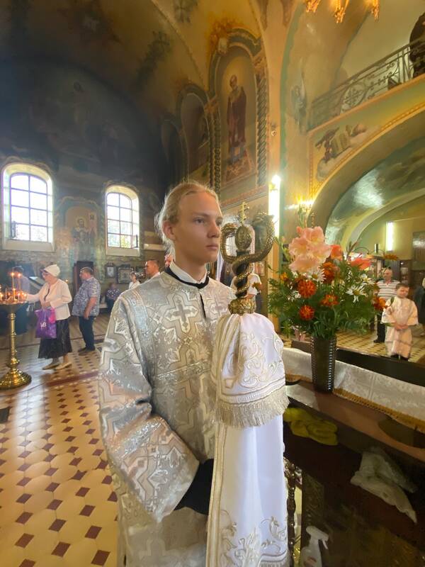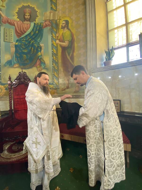 За литургией владыка Вианор благословил на ношение подрясника пономаря кафедрального собора Христа Спасителя, Хохлачева Алексия.