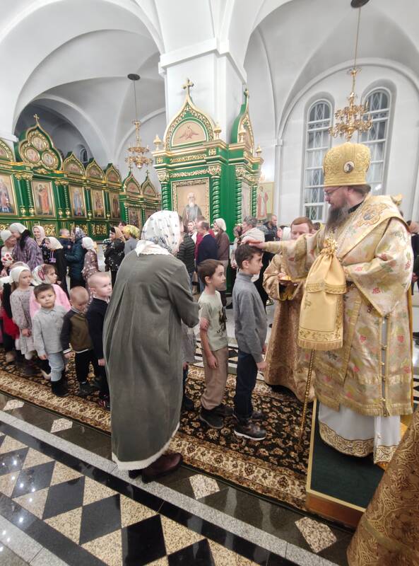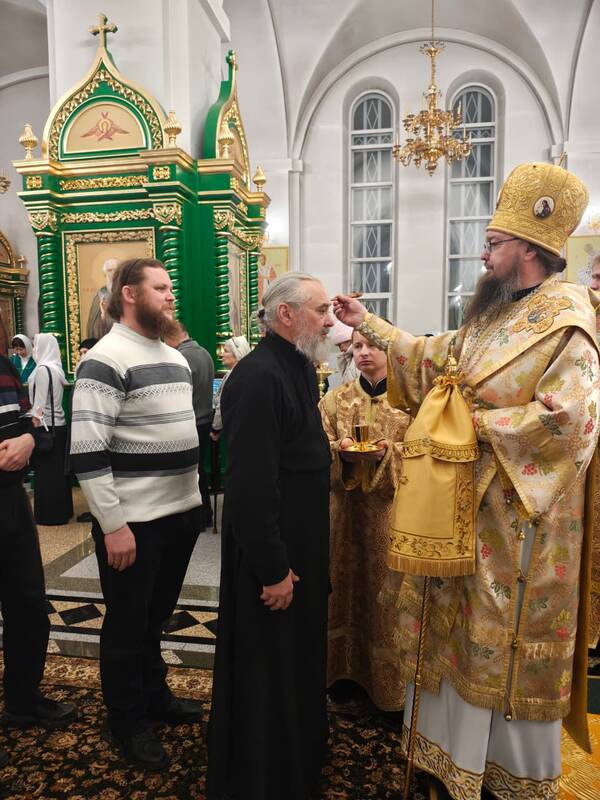На полиелее Его Преосвященство, по древнему церковному установлению, совершил помазание освященным елеем, благословляя всех, кто с верой и благоговением пришел разделить радость совместной молитвы.