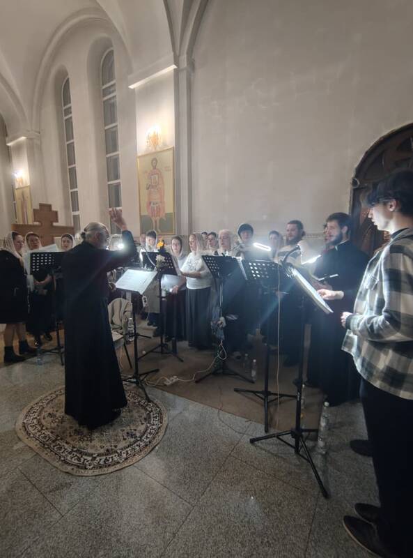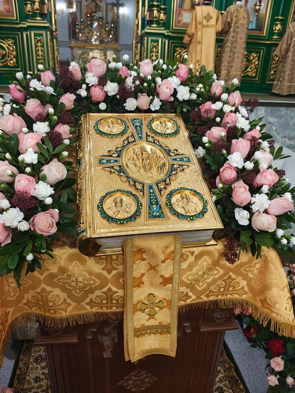 Торжественное богослужение украсило собор особой молитвенной настроенностью: лились вдохновенные песнопения исполняемые сводным церковным хором Карагандинской епархии.