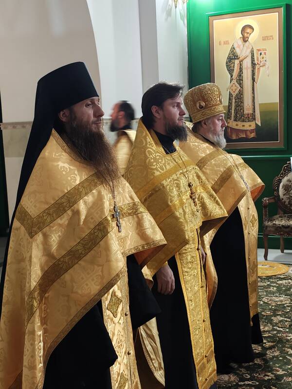 Его Преосвященству сослужили: настоятель Алма-Атинского храма в честь иконы Божией Матери «Всех скорбящих Радость» протоиерей Евгений Воробьев; руководитель личного секретариата митрополита иеромонах Прохор (Ендовицкий); руководитель службы протокола митрополита протодиакон Роман Головин; ключарь Успенского кафедрального собора города Атырау иеромонах Варфоломей (Мостовщиков), а также клирики Карагандинской епархии.