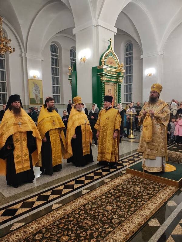 По благословению Его Высокопреосвященства, Высокопреосвященнейшего Александра, митрополита Астанайского и Казахстанского, во Свято-Троице-Севастиановском соборе города Караганды было совершено всенощное бдение, которое возглавил Преосвященнейший Вианор, епископ Уральский и Атырауский.