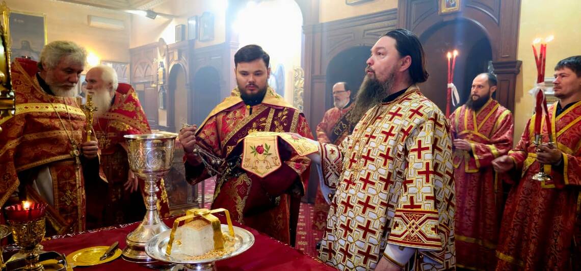 На сугубой ектении архипастырь вознес молитву об умножении любви и искоренении всякой ненависти и злобы. На заупокойной ектении особое поминовение совершили правящий архиерей и духовенство о почившиим архиепископе Антонии (Москаленко), которого сегодня, год назад 23 апреля, вся полнота епархии совершает поминовение в день Его преставления ко Господу.