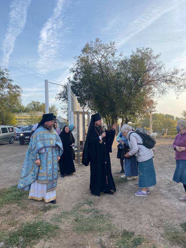 Его Преосвященству сослужили: настоятель архиерейского подворья Свято-Никольского монастыря, протоиерей Александр Пушин, ключарь кафедрального Свято-Успенского собора г.Атырау, иеромонах Варфоломей (Мостовщиков), клирик кафедрального собора Христа Спасителя г.Уральска, иерей Анатолий Гиляшев, клирик Свято-Никольского храма г.Уральска, иерей Вячеслав Стороженко, клирик кафедрального собора Михаила Архангела г.Уральска, иеродиакон Арсений (Рыбальченко).