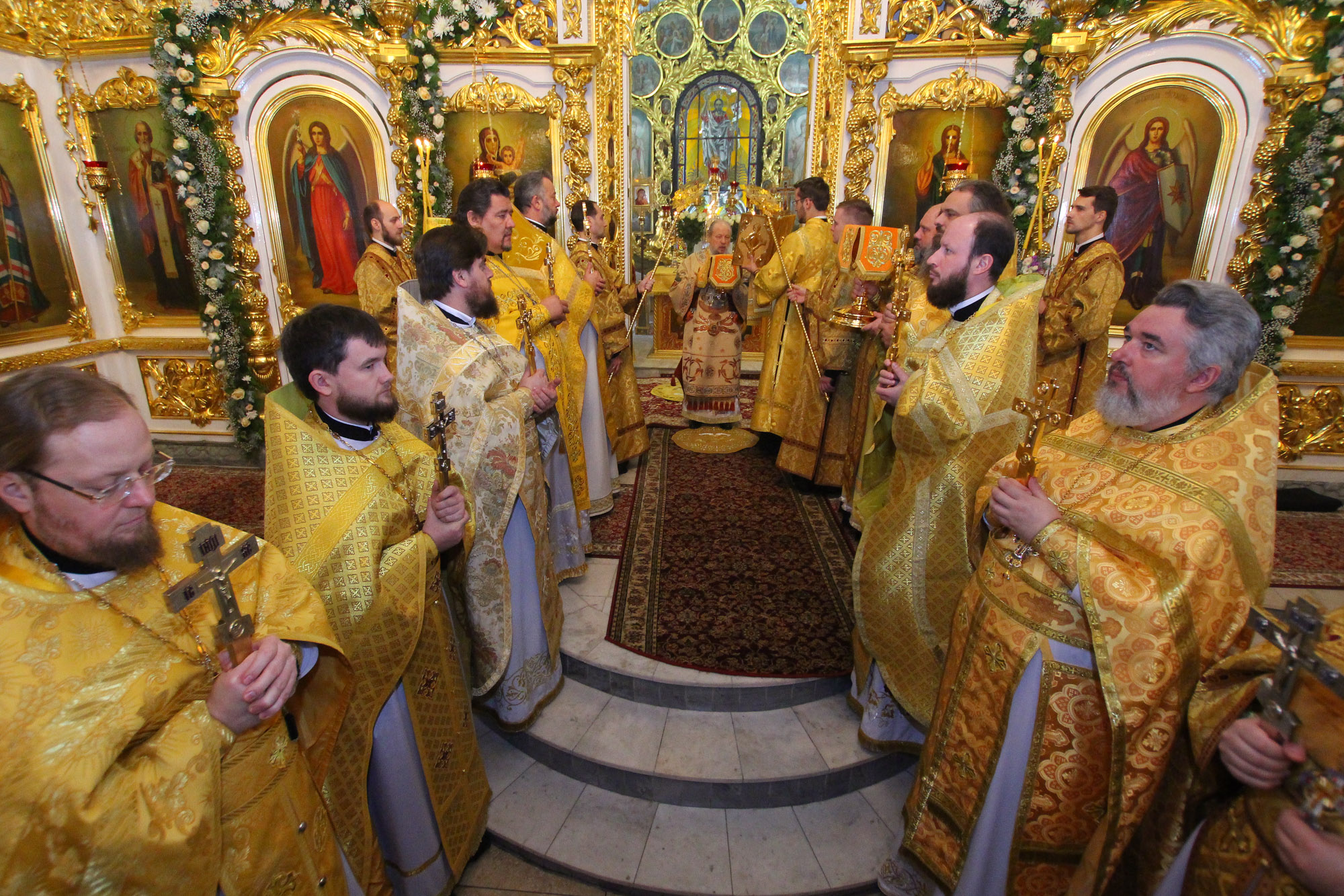 В Богоявленском соборе Высокопреосвященнейший митрополит Антоний возглавил праздничную Божественную литургию. Владыке Антонию сослужили: митрополит Красноярский и Ачинский Пантелеимон, митрополит Орловский и Болховский Тихон, митрополит Смоленский и Дорогобужский Исидор, архиепископ Уральский и Актюбинский Антоний, архиепископ Абаканский и Хакасский Ионафан, епископ Губкинский и Грайворонский Софроний, епископ Минусинский и Курагинский Никанор, епископ Норильский и Туруханский Агафангел, епископ Ливенский и Малоархангельский Нектарий, епископ Великоустюжский и Тотемский Алексий.