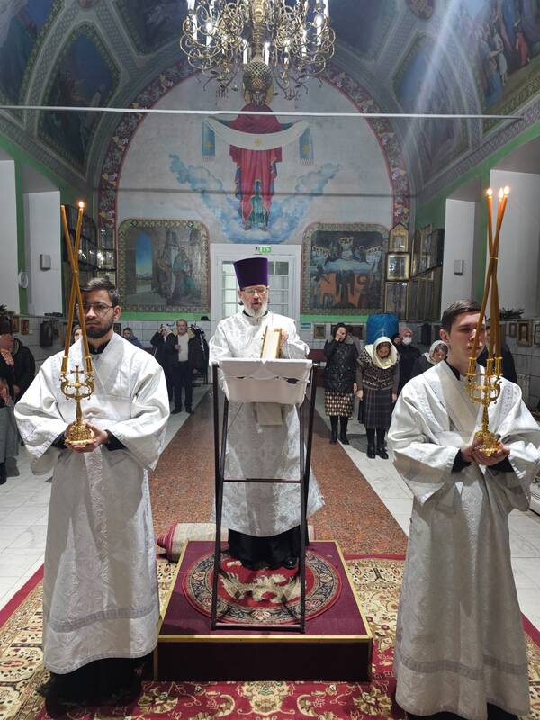 Песнопения богослужения исполнял хор под управлением регента Елены Шевель.