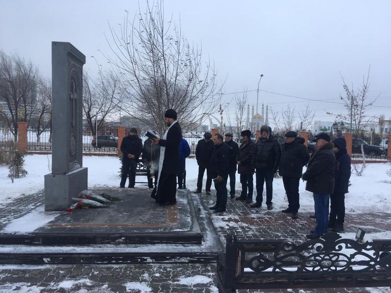 7декабря 2019г.на территории Свято - Никольского Кафедрального Собора г. Актобе, перед памятным Крестом (Хачкаром) и. о. благочинного Церквей Актюбинской области иеромонахом Киприаном (Дахно) была отслужена панихида о жертвах страшного землятресения 1988г. в Армянской ССР.