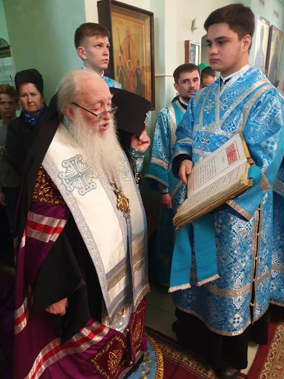 Его Высокопреосвященству сослужили: благочинный Уральского округа архимандрит Дионисий (Козулев), настоятель благовещенского храма протоиерей Игорь Выриков, настоятель Свято-Успенского храма г. Атырау протоиерей Александр Козулев, клирик Благовещенского храма иерей Сергий Понич, секретарь Уральской епархии архидиакон Василий (Крюков).