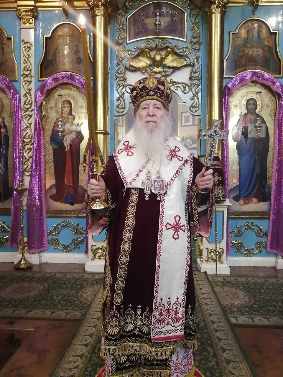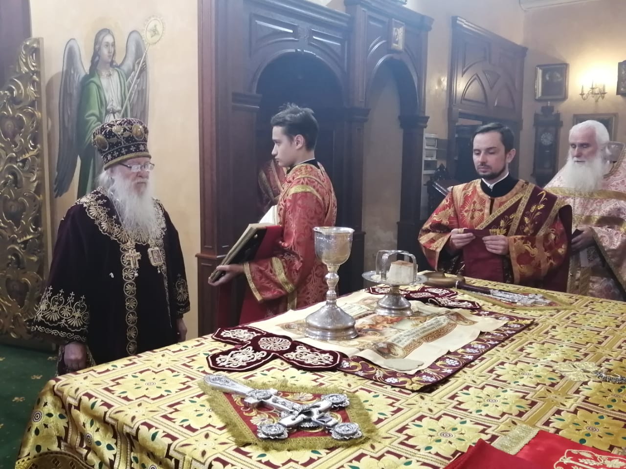 Его Высокопреосвященству сослужили: настоятель кафедрального собора Михаила Архангела г. Уральска архимандрит Феодосий (Курьянов), благочинный Уральского округа архимандрит Дионисий (Козулев), клирики собора, архидиакон Василий (Крюков), диакон Артемий Рыбальченко.