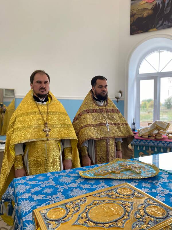 Его Преосвященству сослужили: благочинный Приурального округа протоиерей Василий Кроитор, благочинный Уральского округа протоиерей Владимир Гарасим, настоятель храма Рождества Пресвятой Богородицы п.Переметное, протоиерей Георгий Лемачко, клирик кафедрального собора Михаила Архангела г.Уральска, иерей Андрей Александров, клирик кафедрального собора Михаила Архангела г.Уральска иеродиакон Арсений (Рыбальченко).
