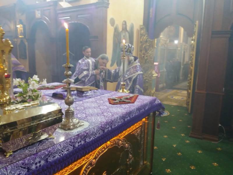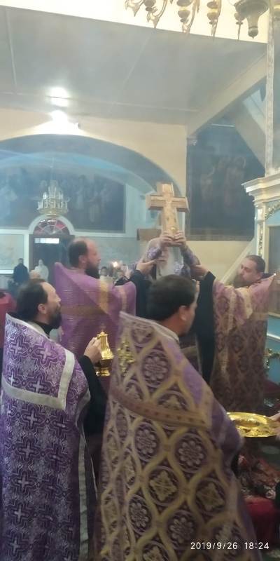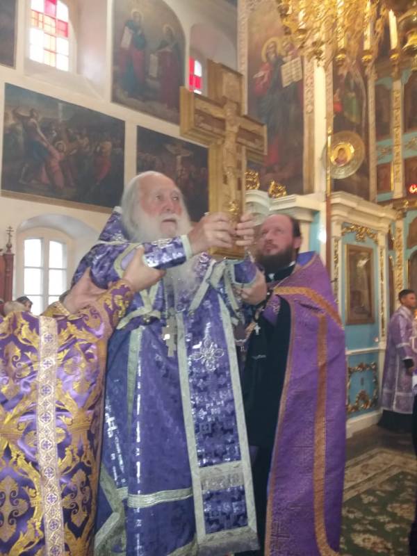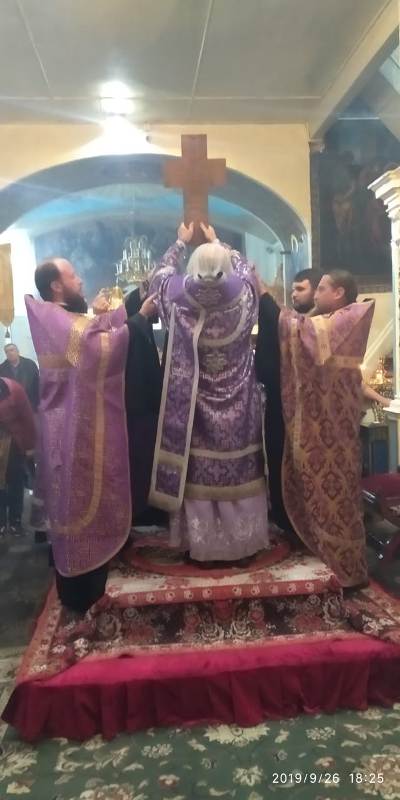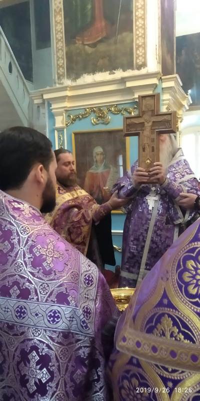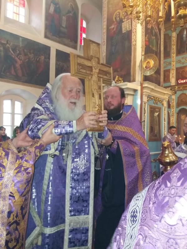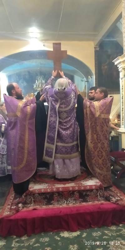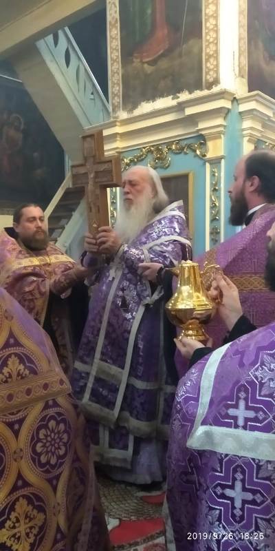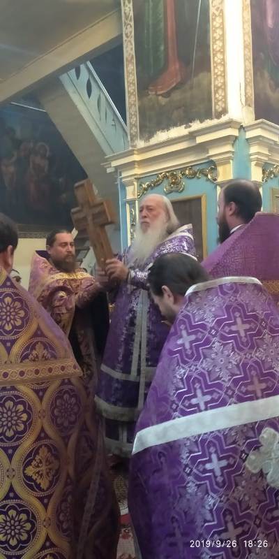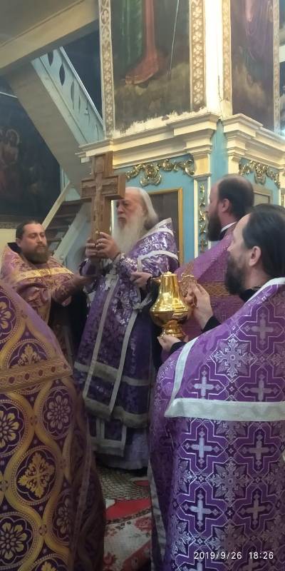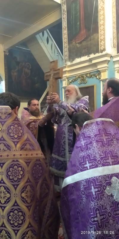 В завершение великого славословия Его Высокопреосвященство совершил чин Воздвижения Животворящего Креста.