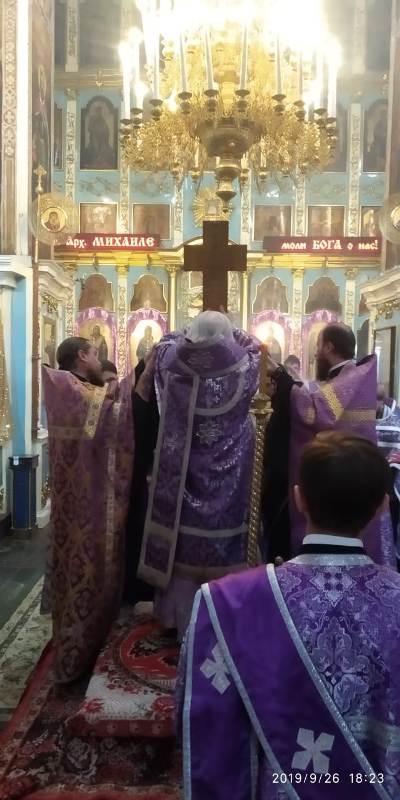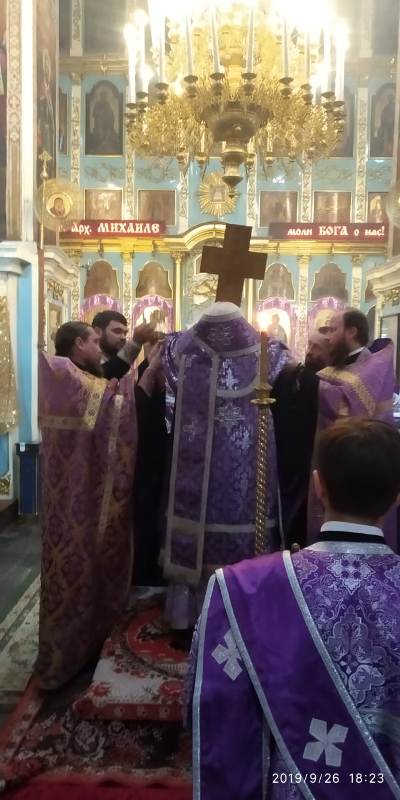 В канун двунадесятого праздника Воздвижения Честного и Животворящего Креста Господня, архиепископ Уральский и Актюбинский Антоний совершил всенощное бдение в кафедральном соборе Михаила Архангела г. Уральска.