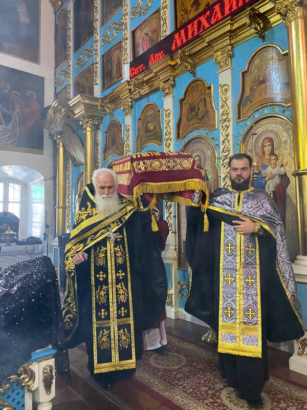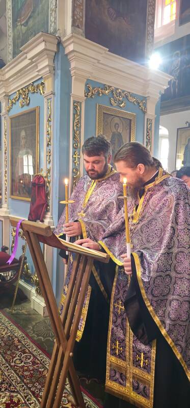 Его Преосвященству сослужили: настоятель кафедрального собора Михаила Архангела г.Уральска архимандрит Феодосий (Курьянов), клирики кафедрального собора: протоиерей Георгий Лемачко, иерей Андрей Александров, диакон Владимир Лемачко.