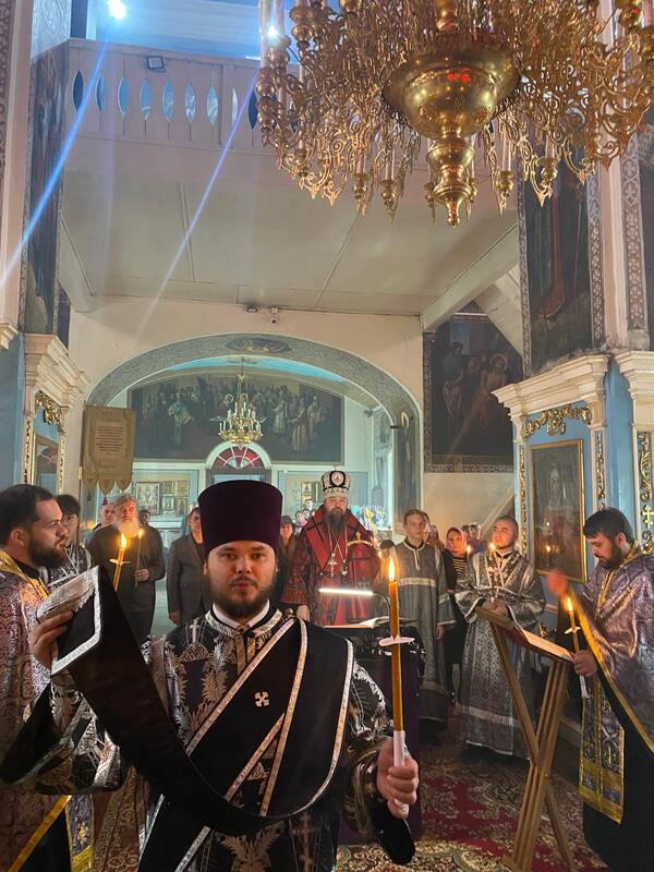 Богослужебные песнопения исполнял архиерейский хор под управлением регента Ларисы Бондаревой.