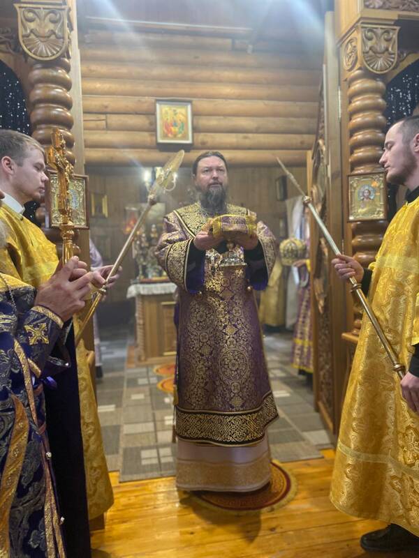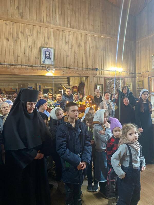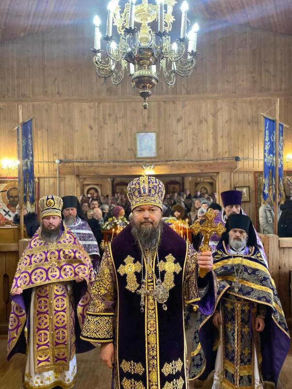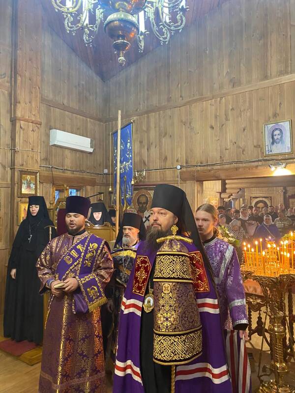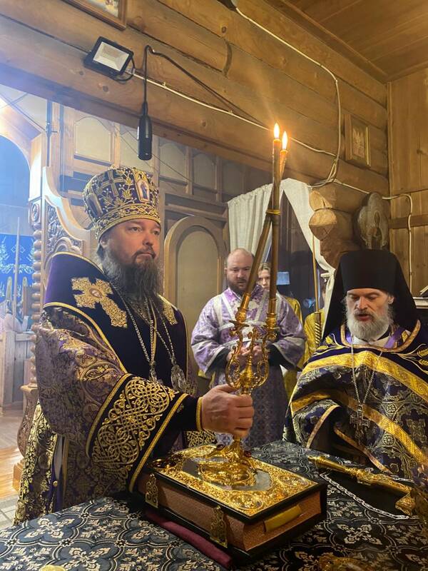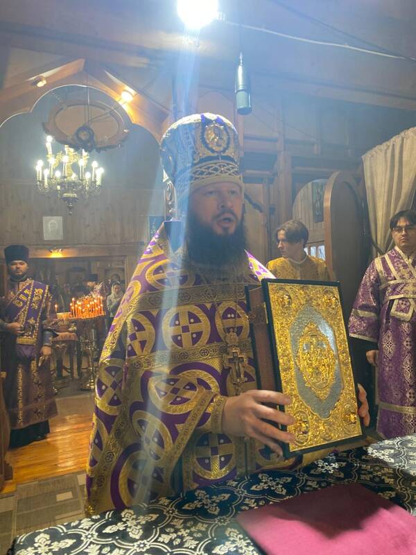 Накануне Преосвященнейший владыка Вианор совершил всенощное бдение и на Богослужении Утрени возглавил акафистное пение святой блаженной старицы Матроны Московской и затем помазал молящихся освященным елеем.