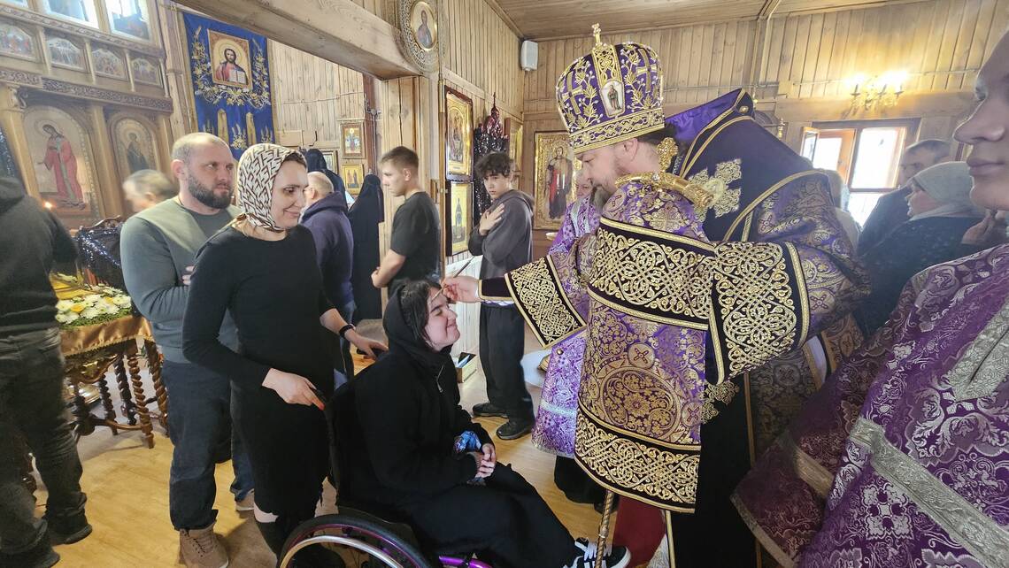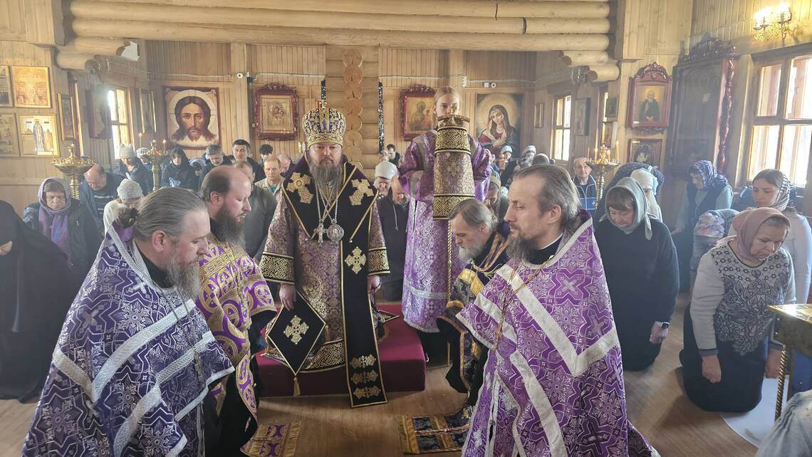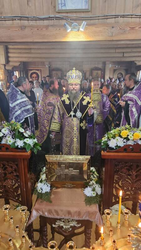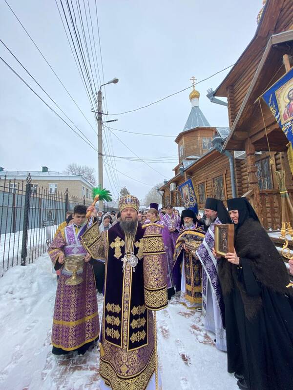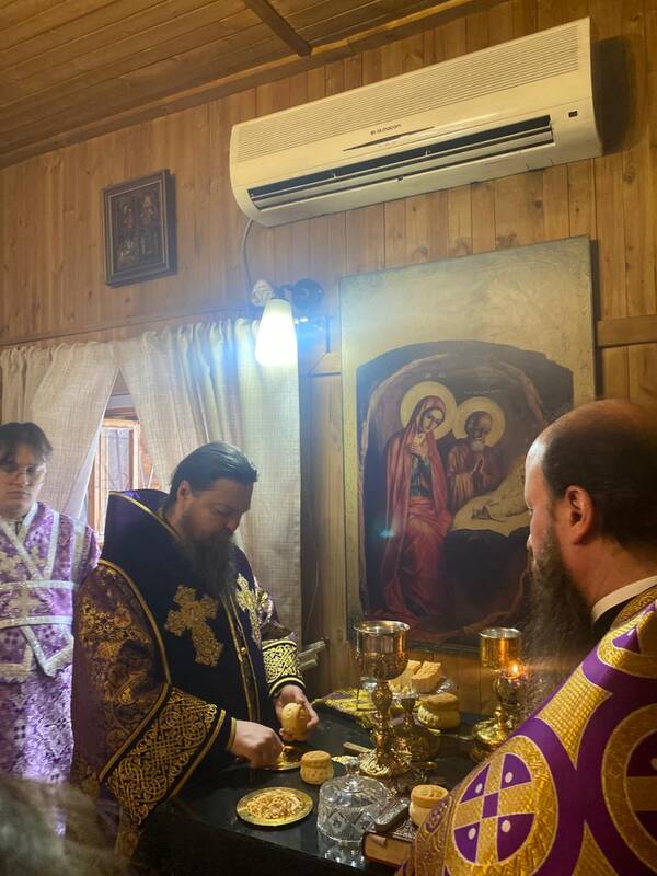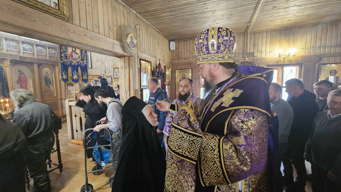 Накануне Преосвященнейший владыка Вианор совершил всенощное бдение и на Богослужении Утрени возглавил акафистное пение святой блаженной старицы Матроны Московской и затем помазал молящихся освященным елеем.