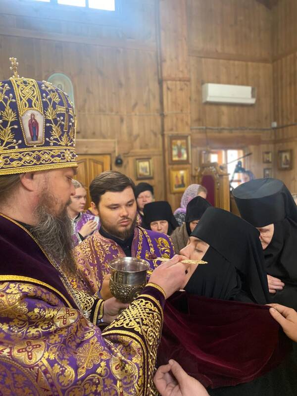 Его Преосвященство, Преосвященнейший Вианор, епископ Уральский и Атырауский, совершил Божественную Литургию Святителя Василия Великого в Покровском женском монастыре г.Уральска.