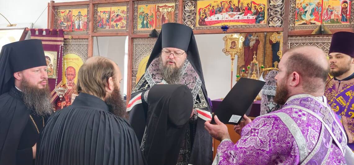 В завершении чина пострига епископ Вианор вручил иеромонаху Варфоломею духовное руководство для новопостриженного монаха Тимофея и обратился со словами духовного назидания.