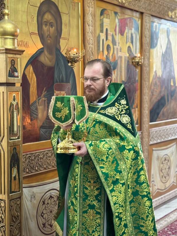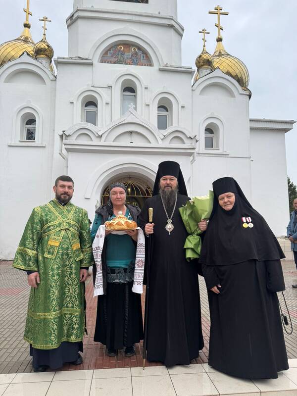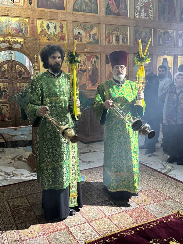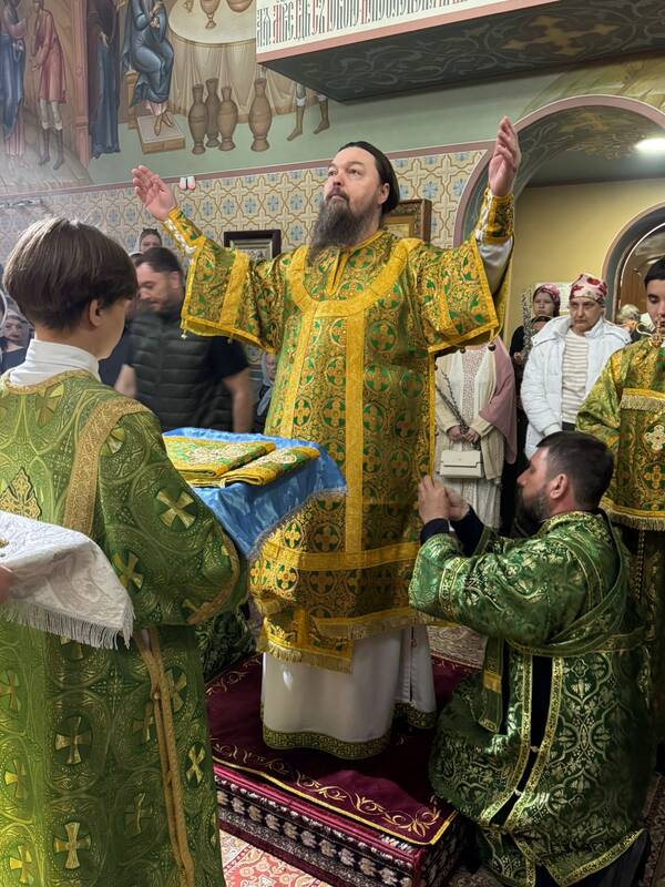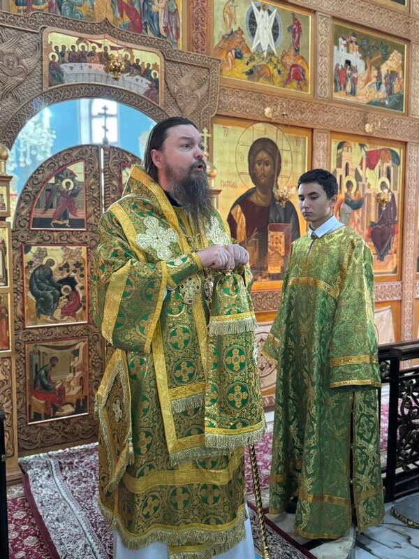 Его Преосвященству сослужили: настоятель Благовещенского храма г.Актау, протоиерей Сергий Понич, ключарь Свято-Успенского кафедрального собора г.Атырау, иеромонах Варфоломей (Мостовщиков), клирик кафедрального собора Христа Спасителя г.Уральска, протодиакон Иоанн Рошка, клирик кафедрального собора Михаила Архангела г. Уральска, иеродиакон Спиридон (Суняков).