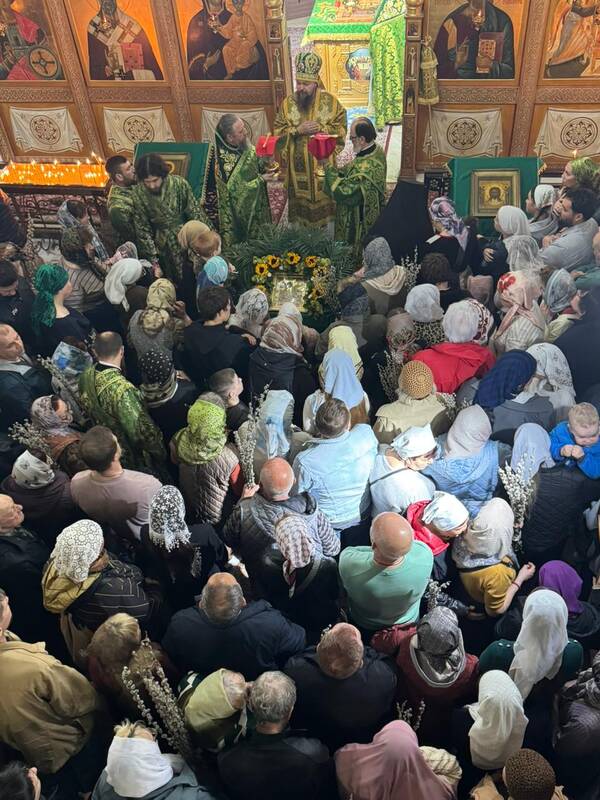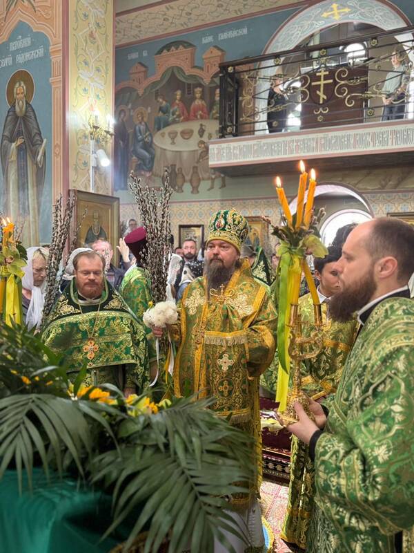 По заамвонной молитве было совершено славление празднику Входа Господня в Иерусалим и затем владыка обратился со словами архипастырского поучения. Его Преосвященство поздравил духовенство и прихожан с двунадесятым праздником и окропил молящихся освящённой водой.