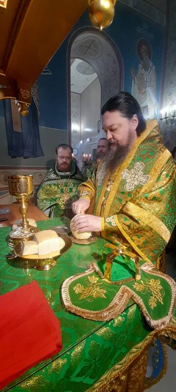 По Уставному богослужению, была совершена лития (усиленное моление) с освящением хлеба, вина, пшеницы и елея (масла).