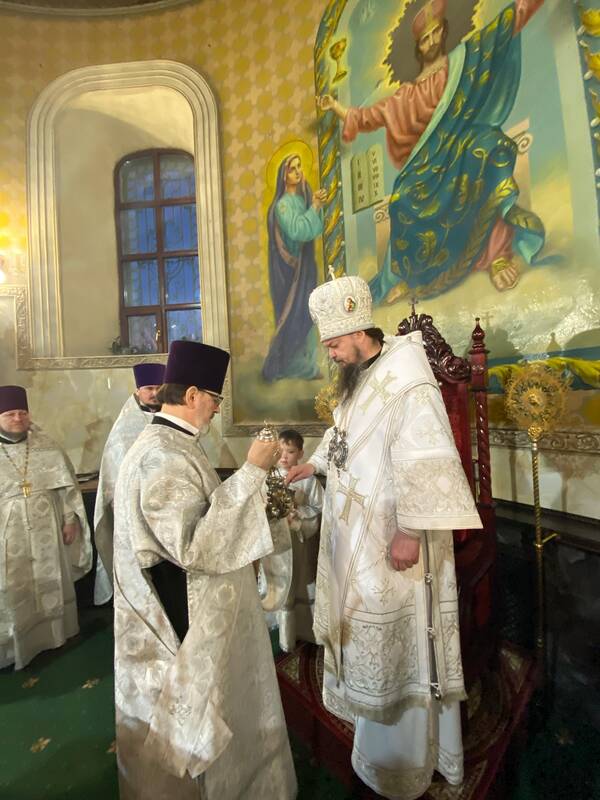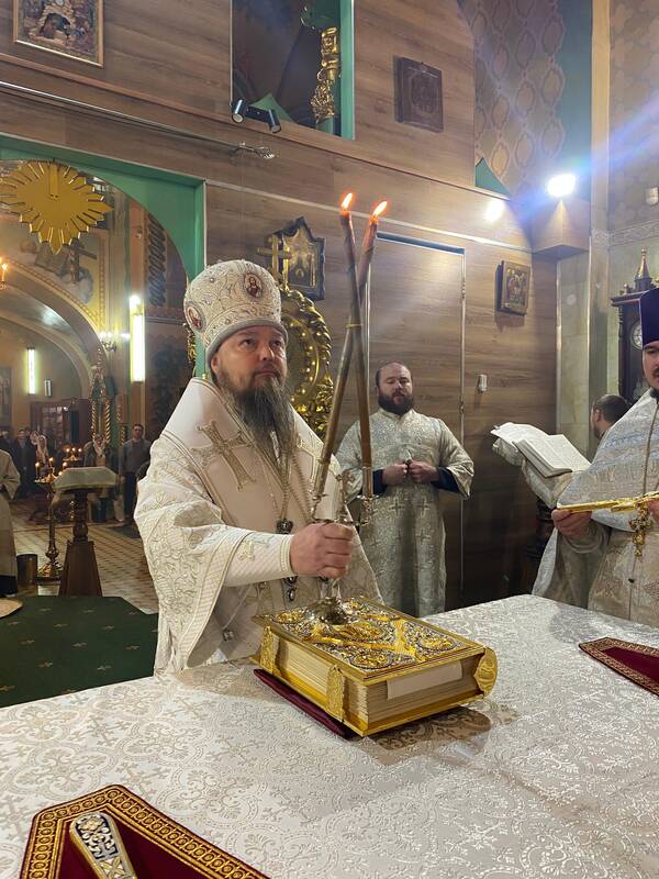 Его Преосвященство, Преосвященнейший Вианор епископ Уральский и Атырауский совершил Божественную литургию в кафедральном соборе Христа Спасителя г.Уральска. Накануне Его Преосвященство совершил всенощное бдение и после чтения Воскресного Святого Евангелия помазал молящихся елеем.