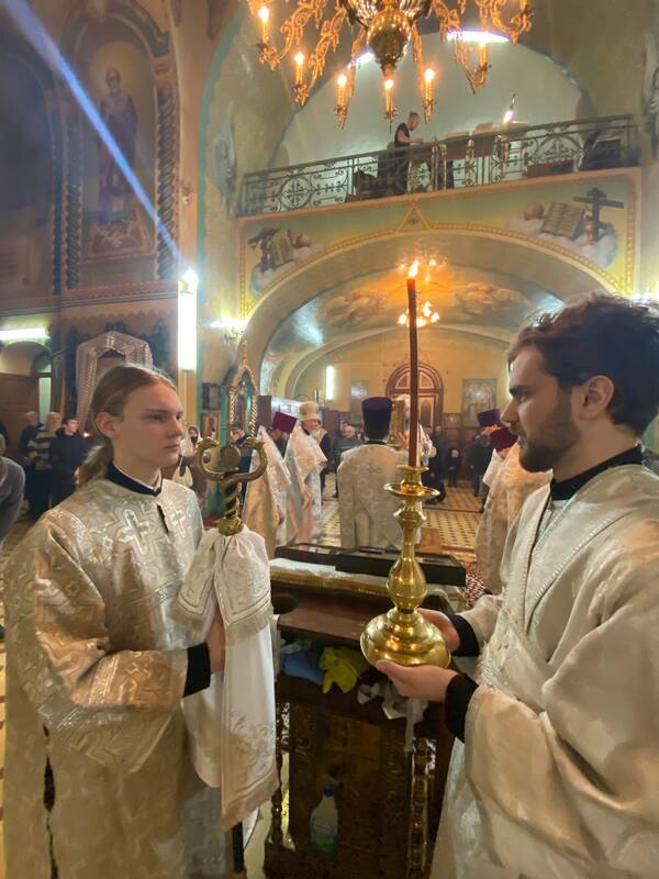 Богослужебные песнопения исполнял хор под управлением регента Ольги Ворфоломеевой.