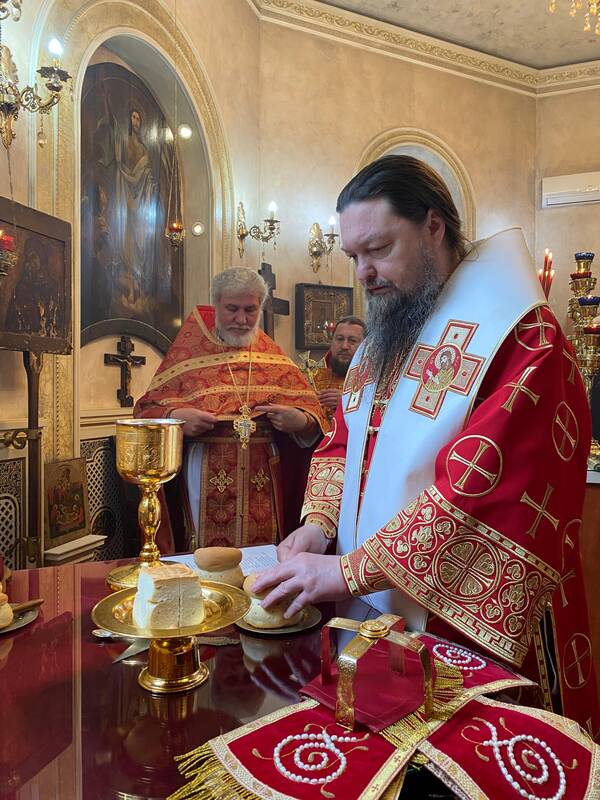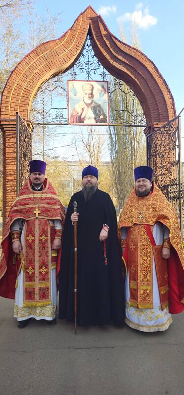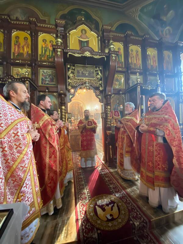 Его Преосвященству сослужили: настоятель кафедрального собора Христа Спасителя г.Уральска, протоиерей Анатолий Робу, настоятель Свято-Никольского храма г.Уральска, игумен Илия (Данилейко), благочинный Уральского округа протоиерей Владимир Гарасим, благочинный Приурального округа протоиерей Василий Кроитор, клирик Свято-Никольского храма г.Уральска, иерей Вячеслав Стороженко, клирик Покровского женского монастыря г.Уральска, иерей Андрей Морозкин, клирик кафедрального собора Христа Спасителя г.Уральска, протодиакон Иоанн Рошка.