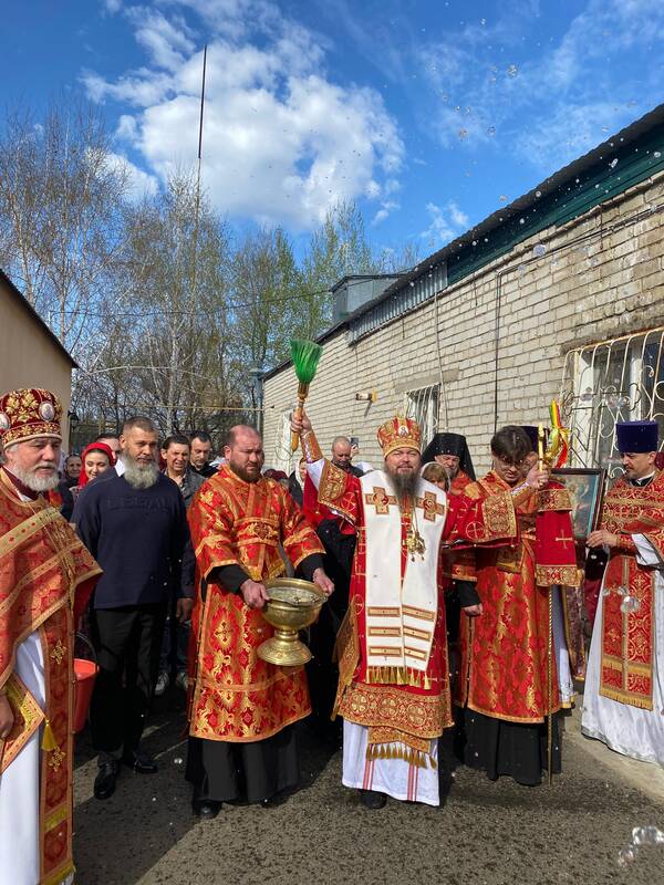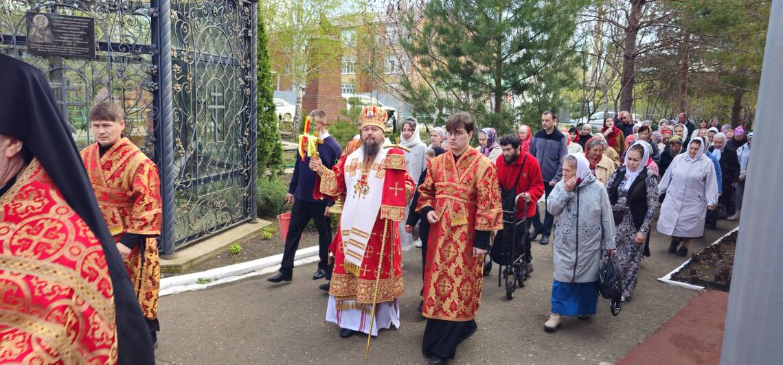 По заамвонной молитве был совершен Пасхальный Крестный Ход с чтением Воскресного Святого Евангелия, владыка Вианор окропил молящихся освящённой водой.