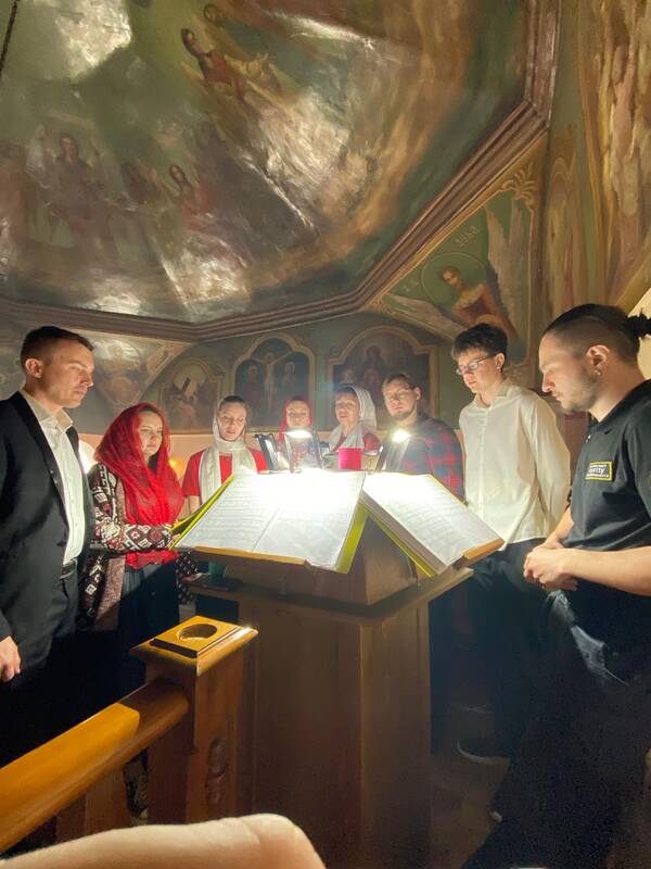 Песнопения Богослужения исполнял хор под управлением регента Анны Саломахиной.