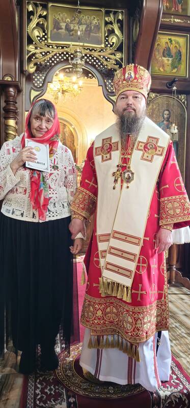 За многолетнее служение и труды на клиросе, Его Преосвященство наградил псаломщицу Свято-Никольского храма г. Уральска Паршину Галину - медалью митрополичьего округа Веры, Надежды, Любови и Софии, с благопожеланиями помощи Божией в трудах на благо Матери нашей Христовой Церкви.