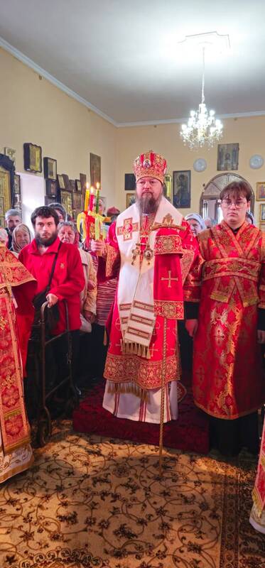 В завершении Литургии Его Преосвященство обратился со словами архипастырского поучения и поздравил духовенство и прихожан с Великим Торжеством, с Праздником Великой и Спасительной Пасхи Христовой.