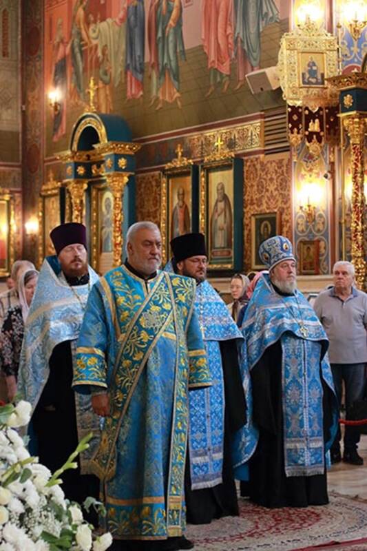 Его Преосвященству сослужили: настоятель храма в честь иконы Божией Матери «Всех скорбящих Радость» протоиерей Евгений Воробьев, ключарь Успенского кафедрального собора иеромонах Димитрий (Байдек), соборное духовенство и клирики Астанайского благочиния.