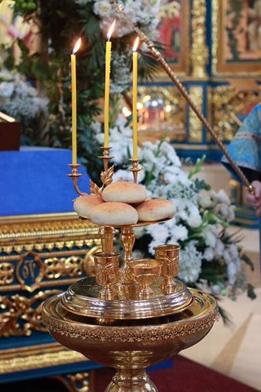 На великой вечерне по церковному Уставу была совершена лития (усиленное моление) с освящением хлеба, вина, пшеницы и елея (масла).