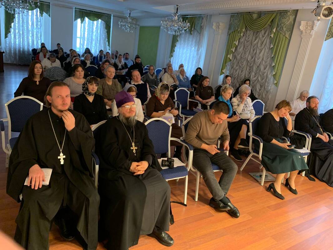 По благословению Преосвященнейшего епископа Вианора участвовали в конференции представители Уральской епархии: иерей Александр Ермаков, Касьянова Людмила Сергеевна-директор Воскресной школы г. Актау, Стороженко Елена Александровна-директор Воскресной школы Св.-Никольского храма г. Уральска.