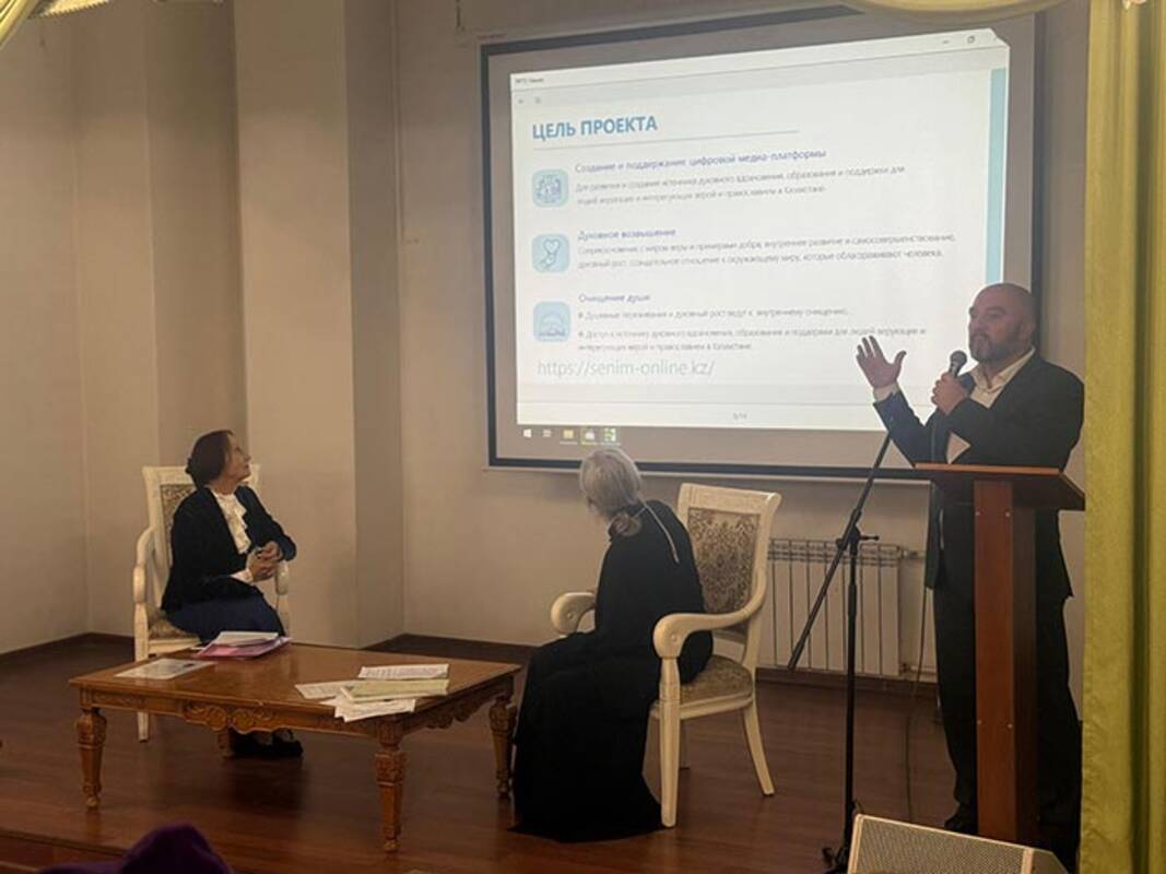 В рамках работы конференции состоялась презентация платформы «Senim Online». Проект представил его руководитель А.Ю. Гревцев. В ходе своего выступления Александр Юрьевич рассказал присутствующим о целях и этапах создания духовно-просветительского проекта, осуществляемого под эгидой Православной Церкви Казахстана и при поддержке фонда «Өркендеу». Также спикер проинформировал собравшихся о концепции интернет-портала и ближайших планах его работы.