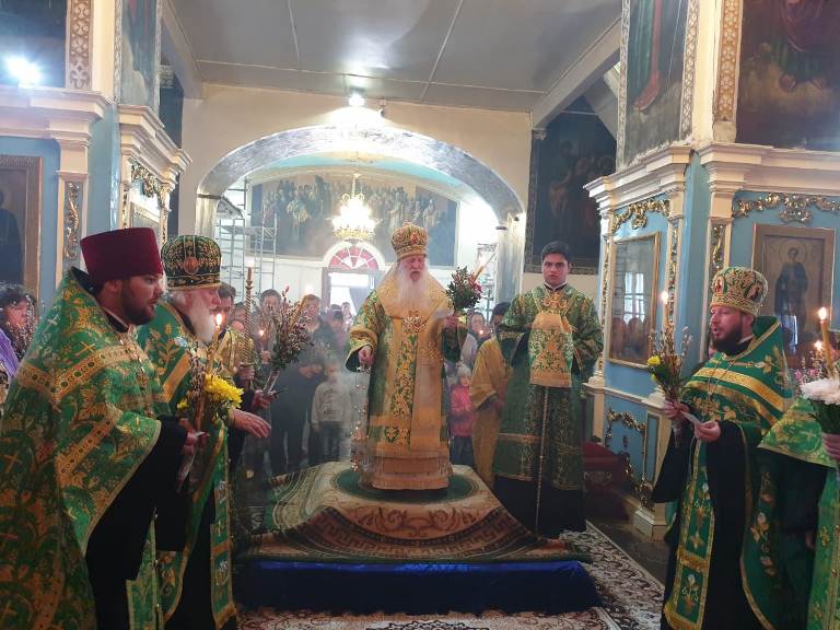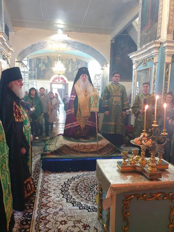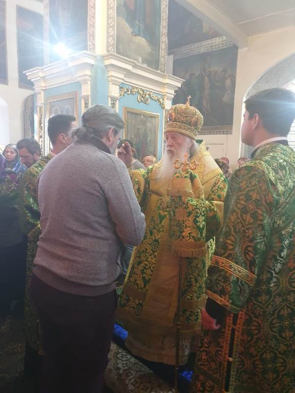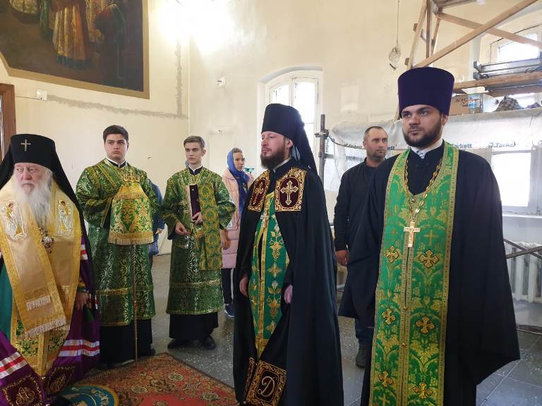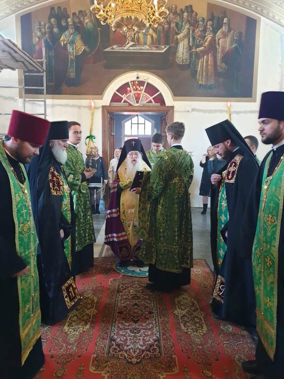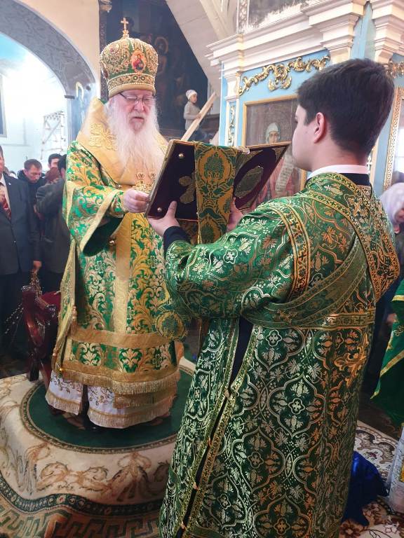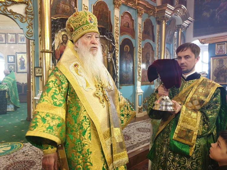 Его Высокопреосвященству сослужили: настоятель кафедрального собора Михаила Архангела г. Уральска архимандрит Феодосий (Курьянов), благочинный Уральского округа архимандрит Дионисий (Козулев), секретарь уральской епархии архидиакон Василий (Крюков) и клирики собора.