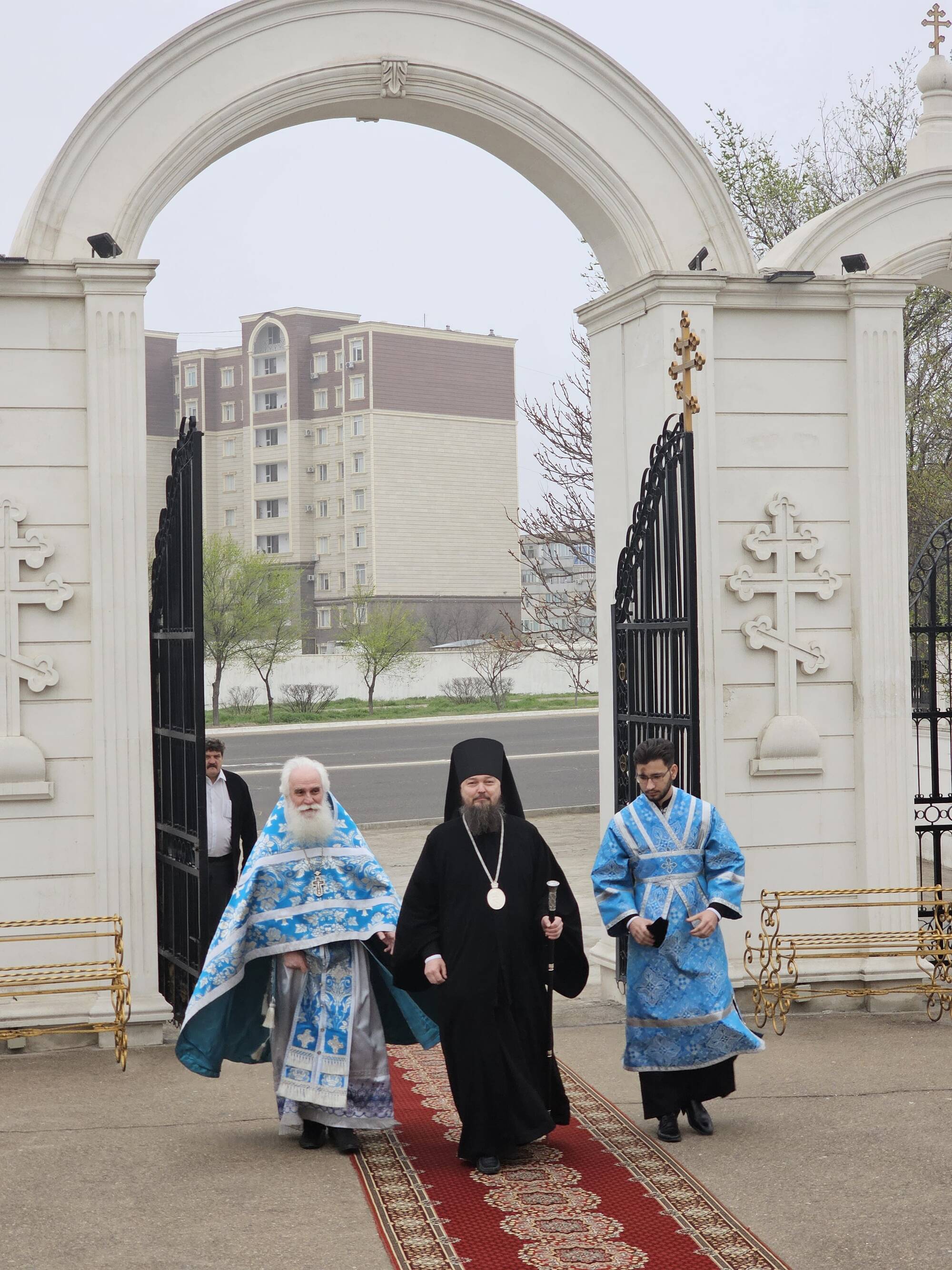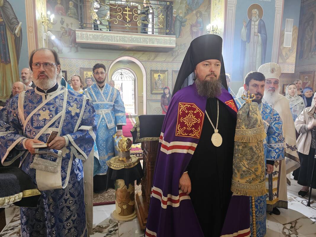 Его Преосвященству сослужили: настоятель кафедрального собора Михаила Архангела г.Уральска архимандрит Феодосий (Курьянов); ключарь кафедрального Свято-Успенского собора г.Атырау иеромонах Варфоломей (Мостовщиков); настоятель Благовещенского храма г.Актау протоиерей Сергий Понич; клирик Благовещенского храма г.Актау иерей Михаил Соколов; клирик кафедрального собора Христа Спасителя г.Уральска протодиакон Иоанн Рошка, клирик кафедрального собора Михаила Архангела г.Уральска иеродиакон Арсений (Рыбальченко).