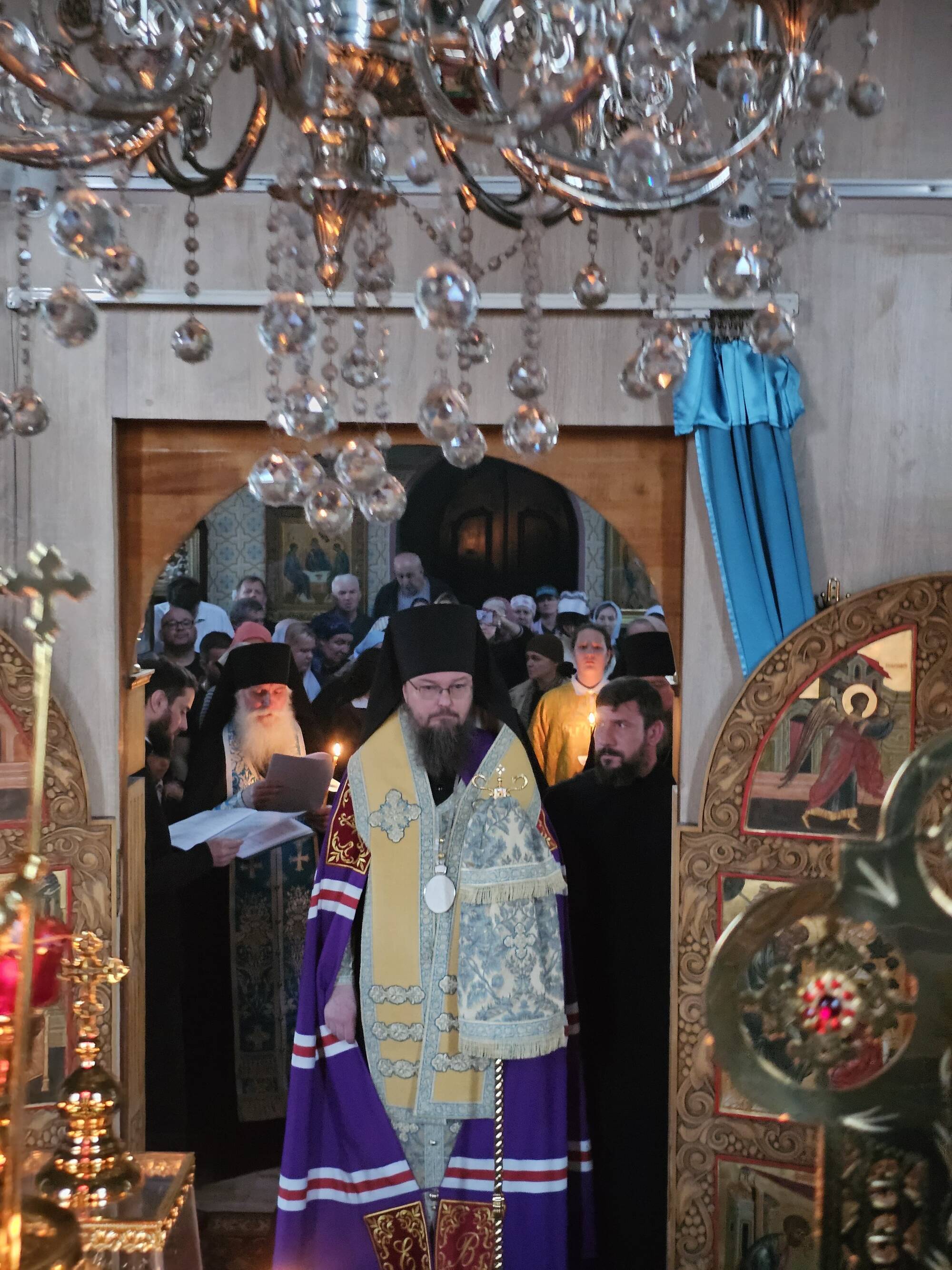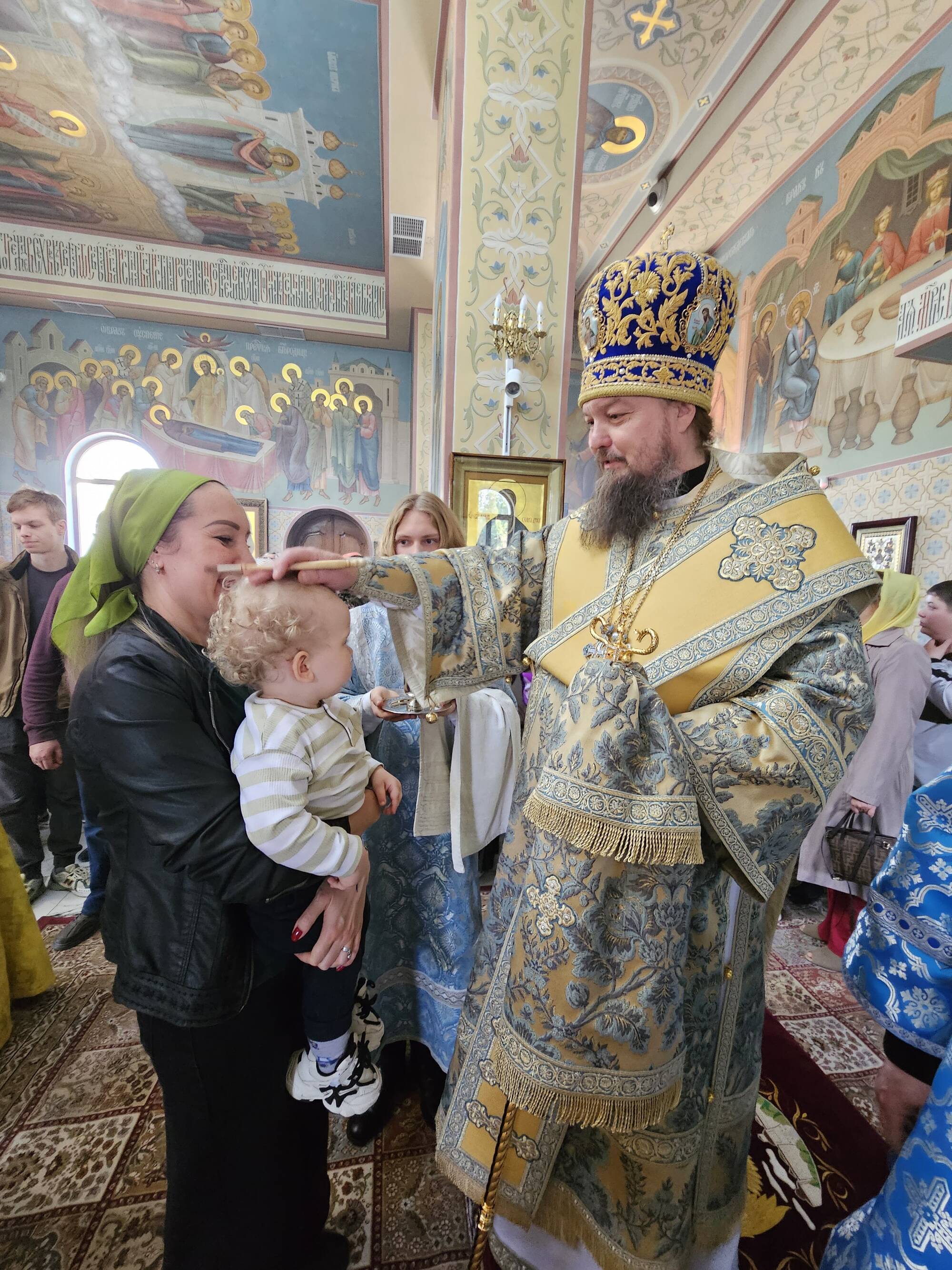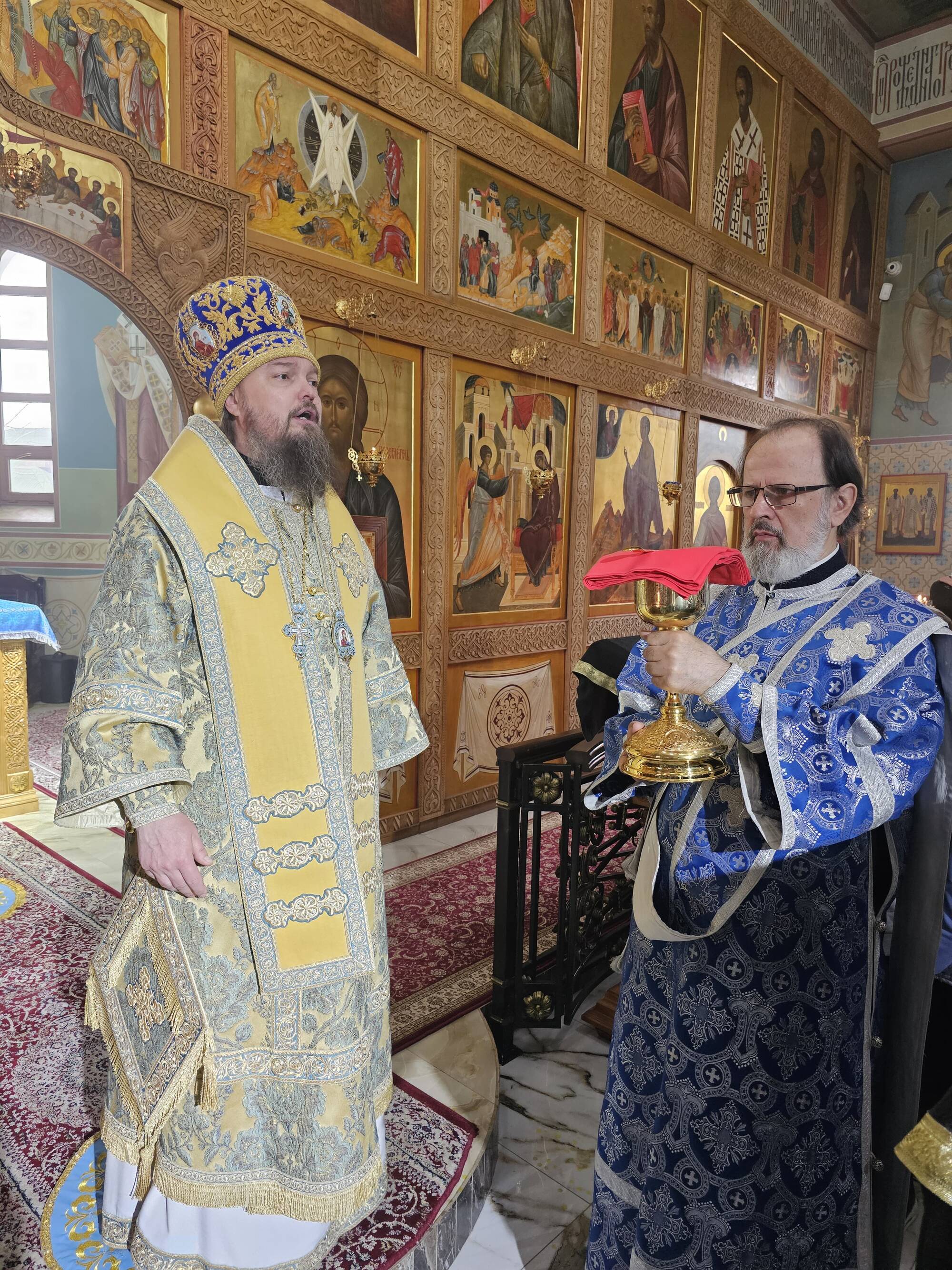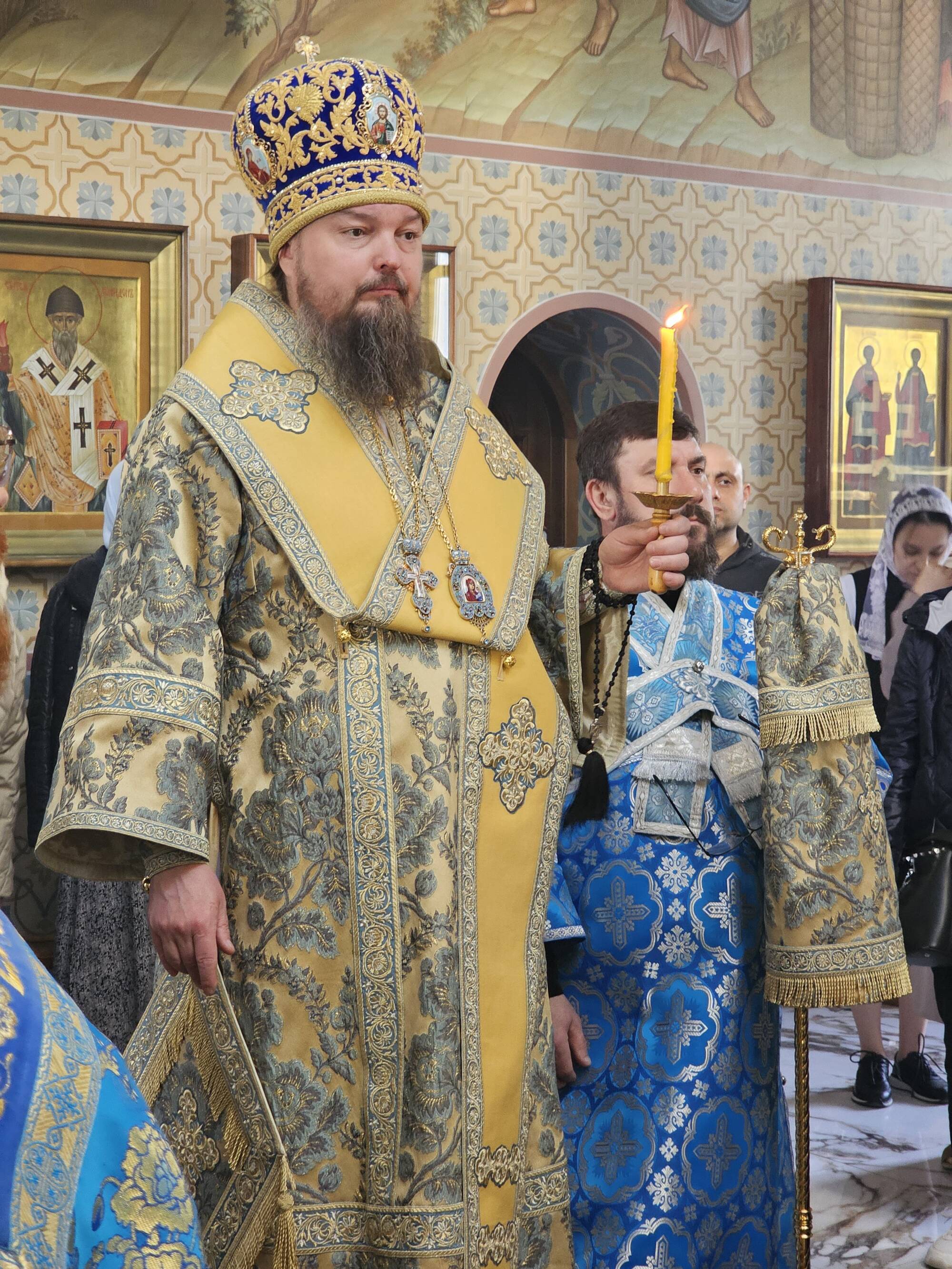 В завершении Богослужения Его Преосвященство обратился со словами архипастырского поучения и преподал архиерейское благословение, окропив молящихся освящённой водой.