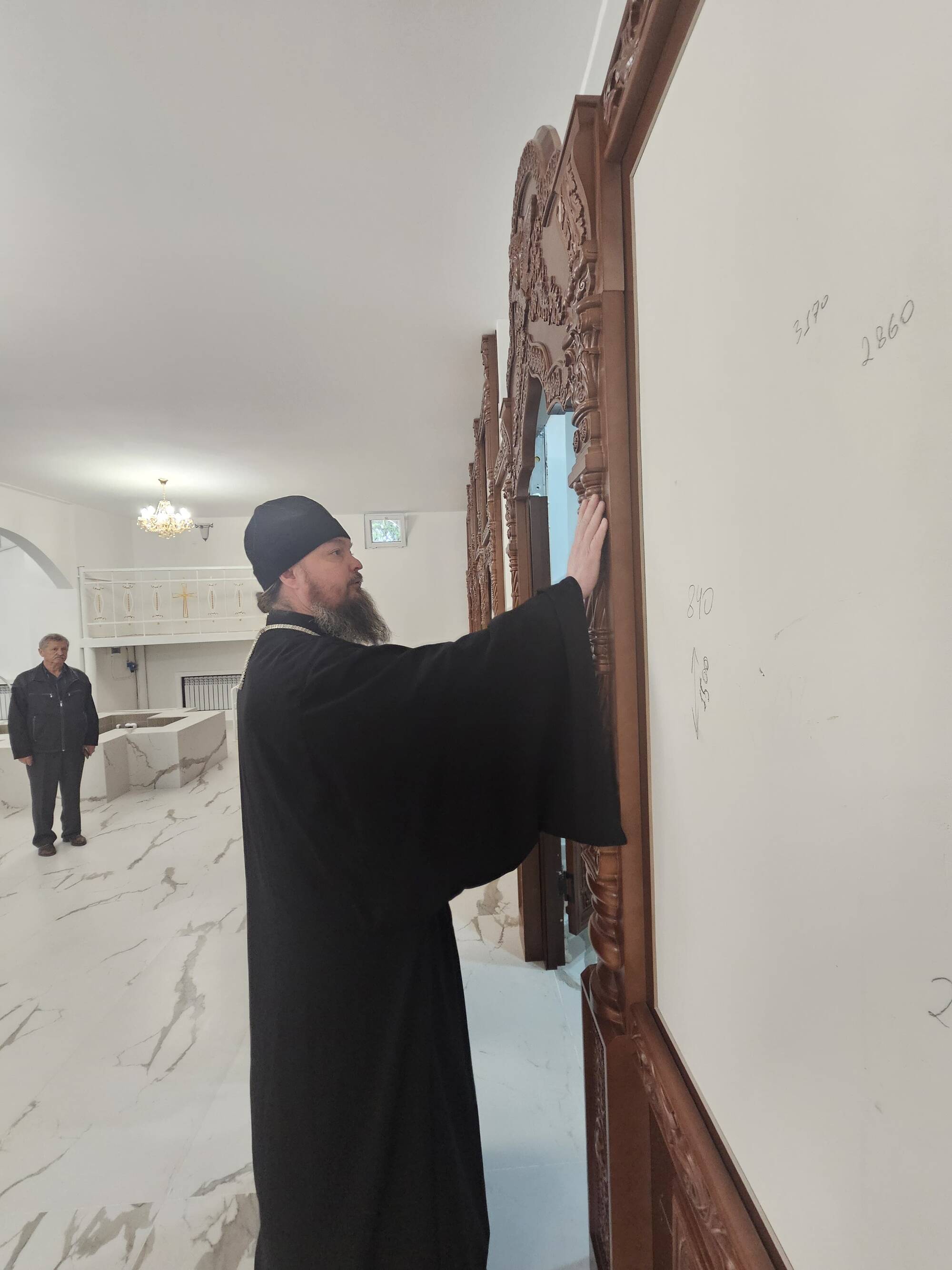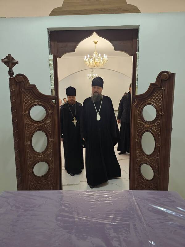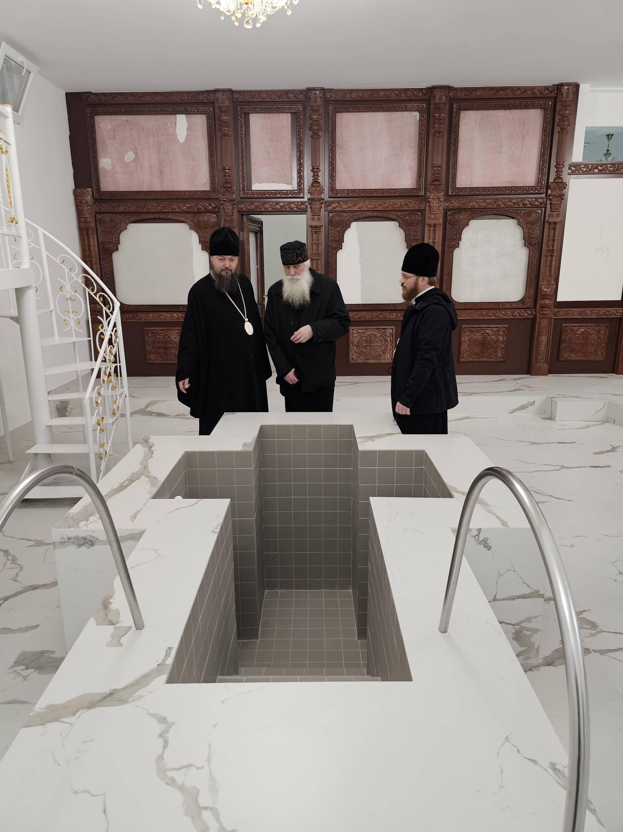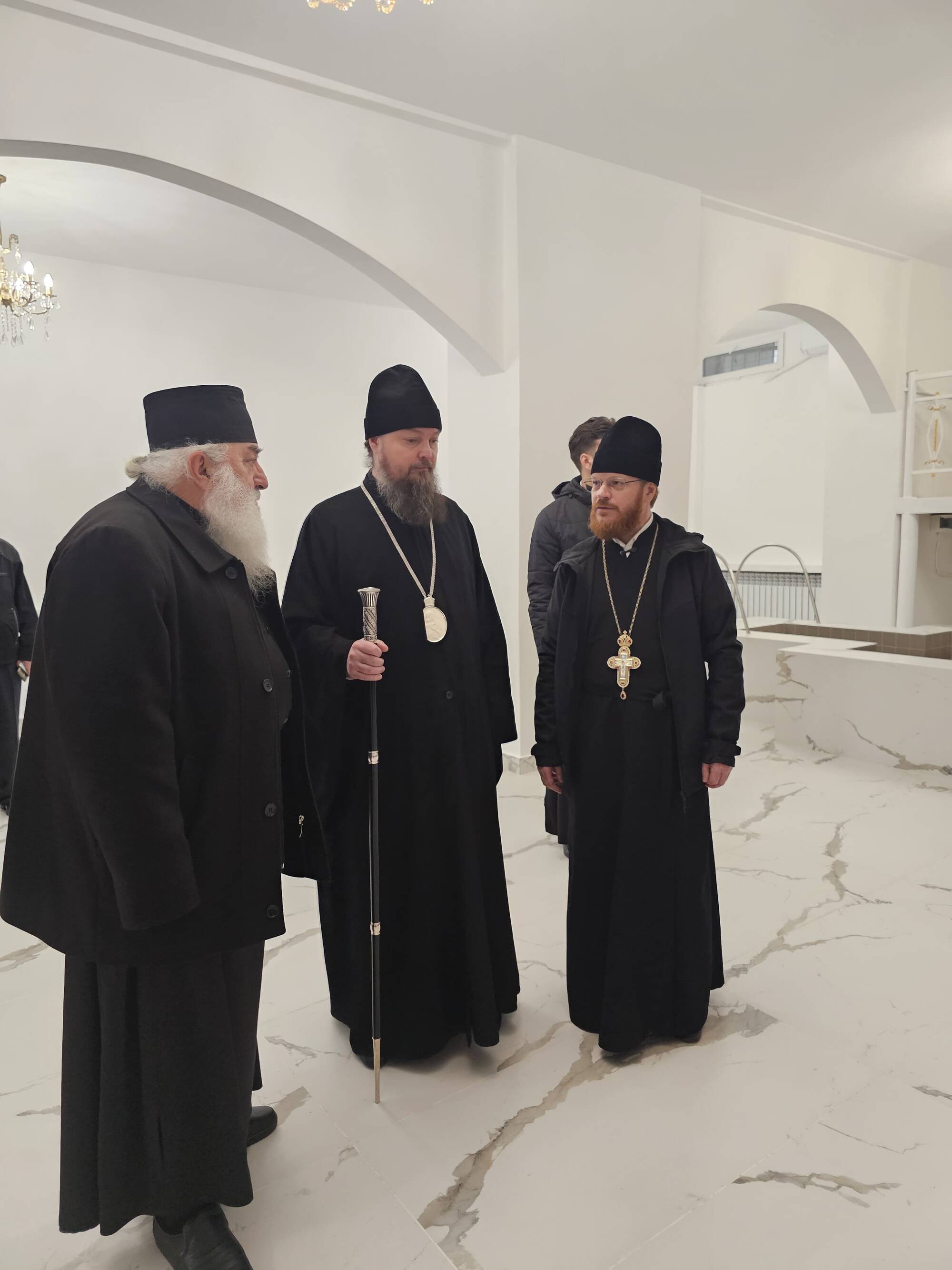 Его Преосвященство по окончании Богослужения осмотрел нижний храм после капитального ремонта и ознакомился с ходом подготовки к освящению нижнего придела в честь прп. Марии Египетской.