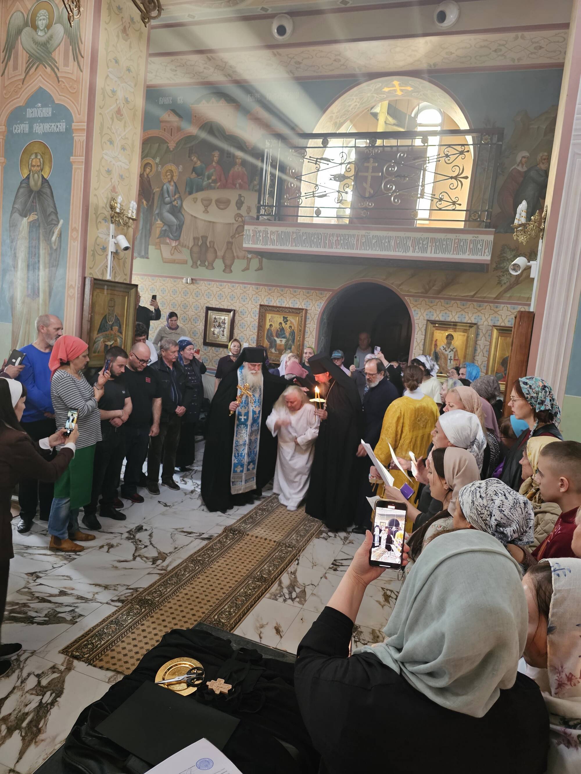 По заамвонной молитвы было совершено славление Святителю Тихону и прп. Марии Египетской.