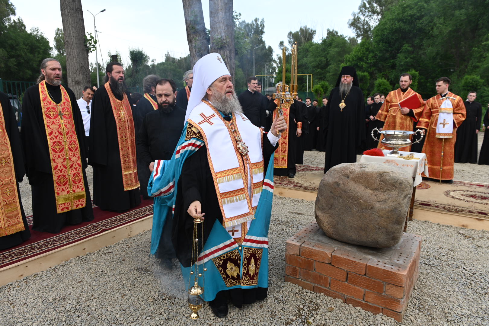 26 мая 2021 года. Алма-Ата. В праздник Преполовения Пятидесятницы митрополит Астанайский и Казахстанский Александр совершил освящение закладного камня...